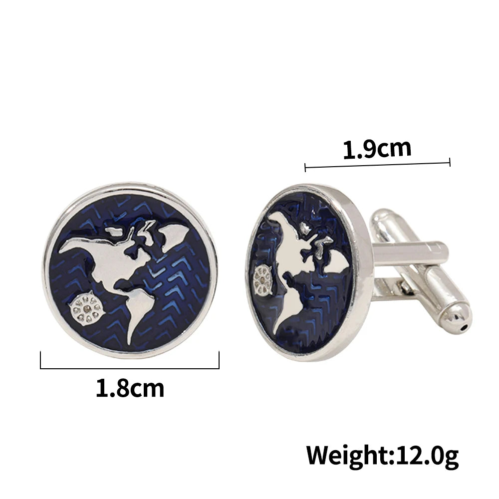Creați o impresie subtilă și sofisticată cu acești butoni de manșetă de înaltă calitate, cu design de hartă a lumii și busolă – ideali pentru cămăși și costume, combinând personalitatea și stilul.