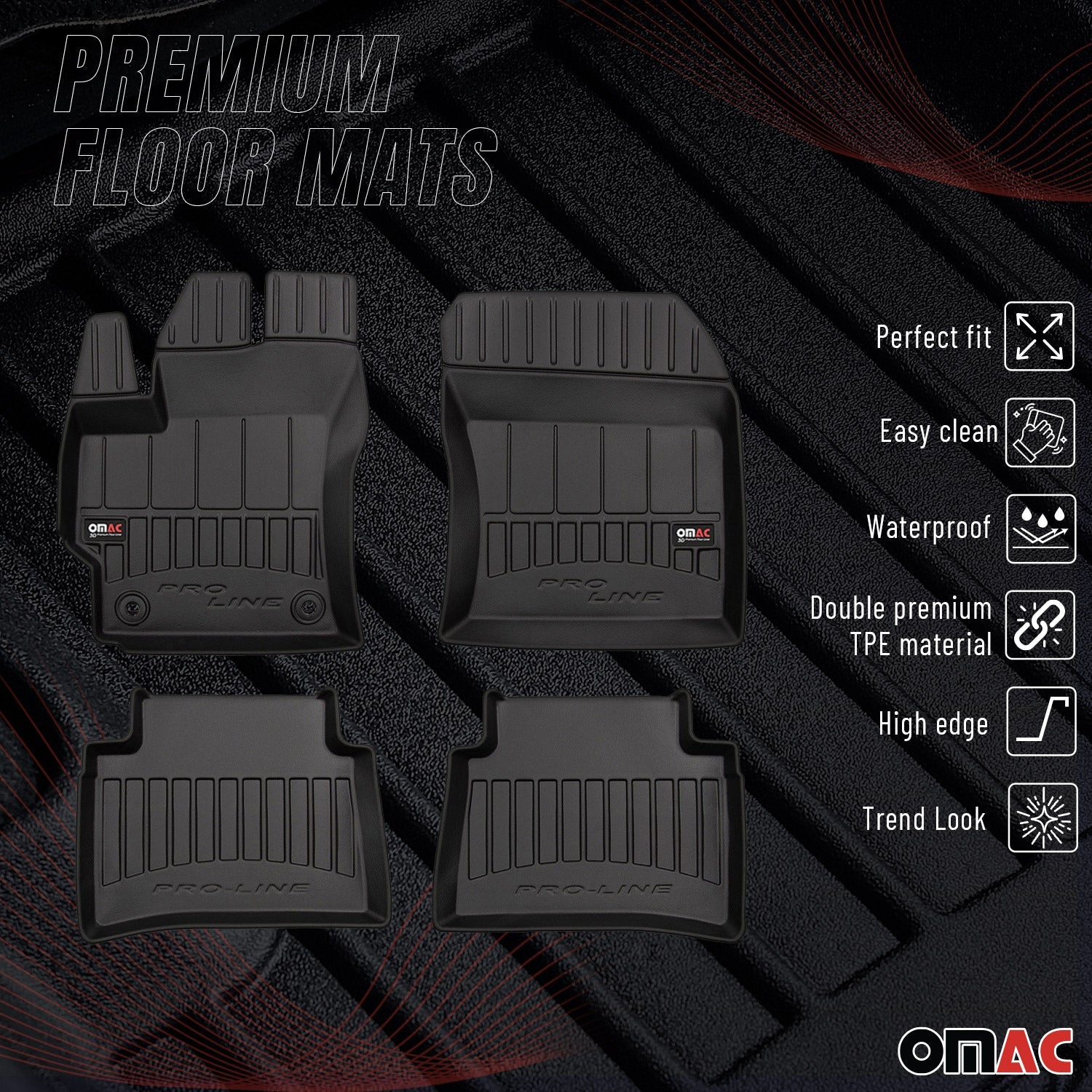 Vă prezentăm covorașele noastre premium din TPE: specifice vehiculului, inodore, cu un parfum delicat de vanilie, impermeabile, ecologice, cu protecție ridicată a marginilor, durabilitate maximă, tehnologie antiderapantă, protecție împotriva intemperiilor, aspect luxos.