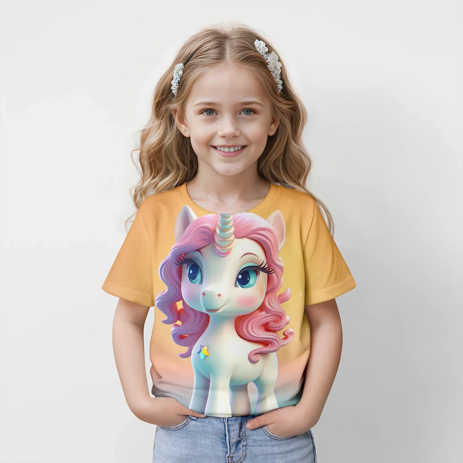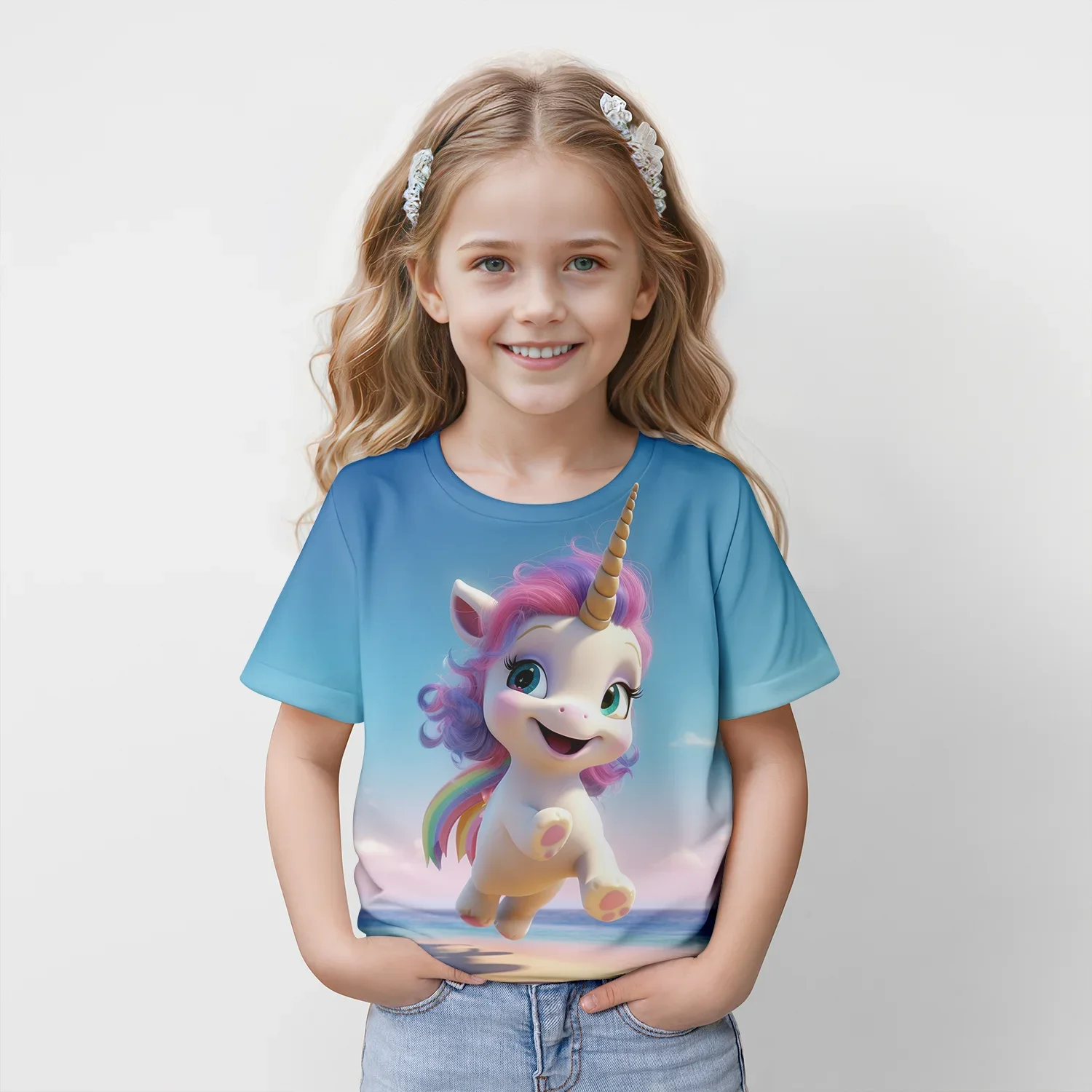 Tricou pentru copii 2025: Grafică 3D Unicorn - Tehnologie inovatoare de imprimare