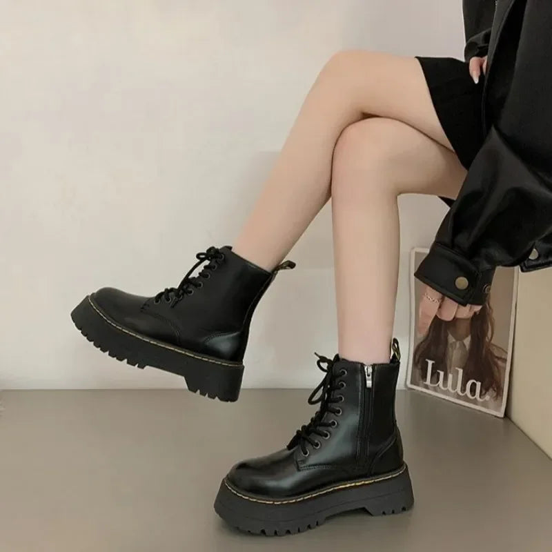 Ghete Chelsea din piele COZOKCN cu platformă - Mărimea 38, Toc de 3 cm, Ax până la gleznă