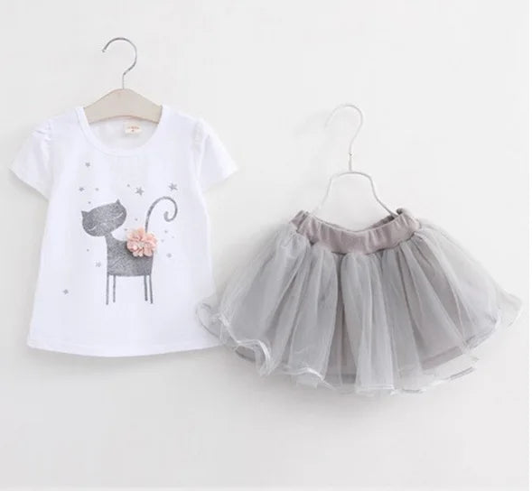 - Setul include: 1 tricou cu mânecă scurtă din bumbac cu desene animate + 1 fustă tutu din plasă