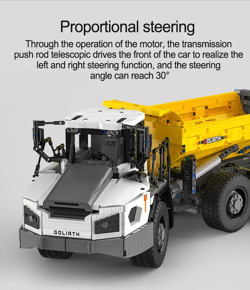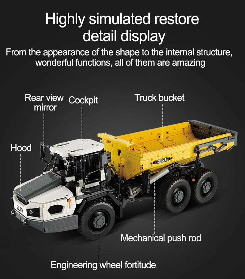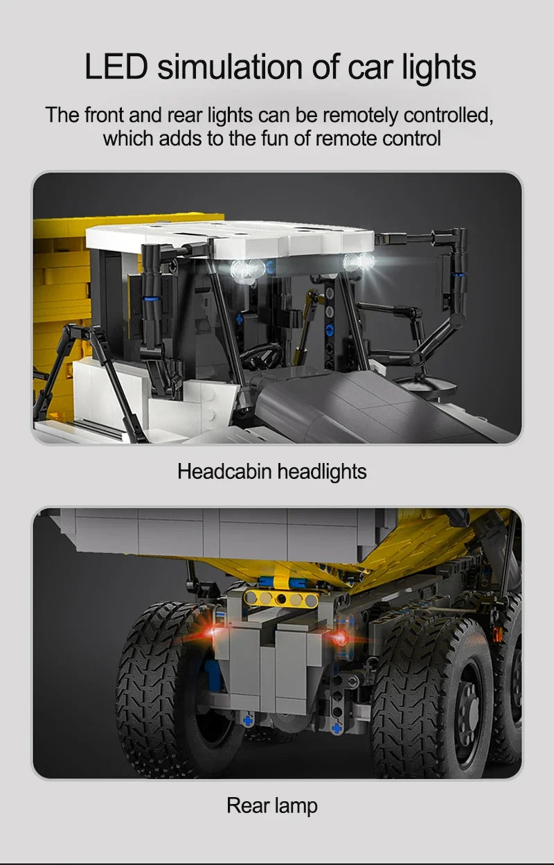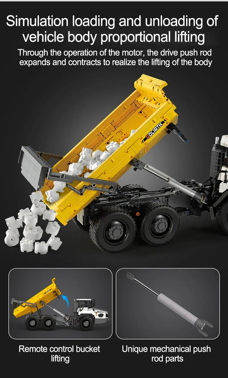 Experimentează senzația realistă de șantier: Un set complet de construcție cu 3067 de piese pentru basculante RC, care combină construcția creativă, distracția condusului cu telecomandă și tehnologia detaliată.