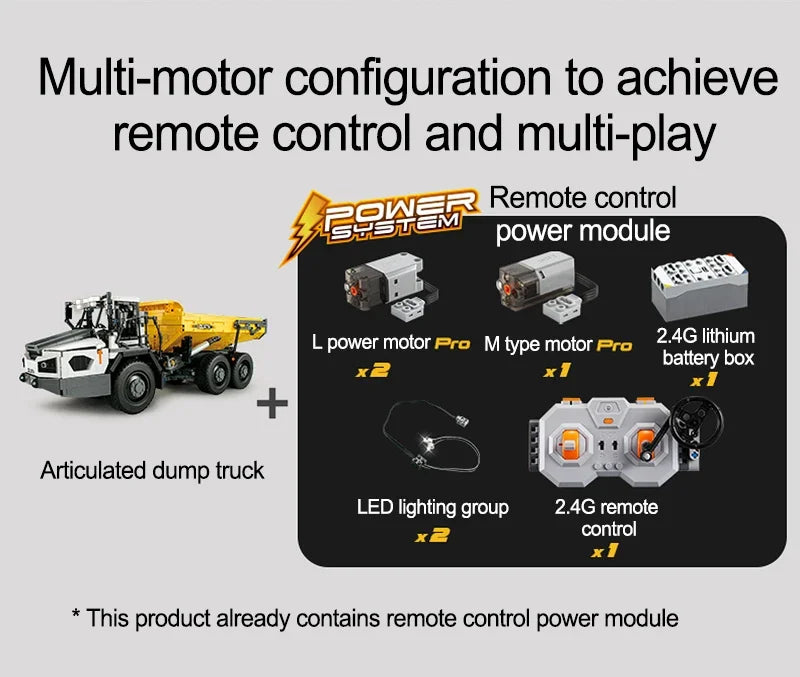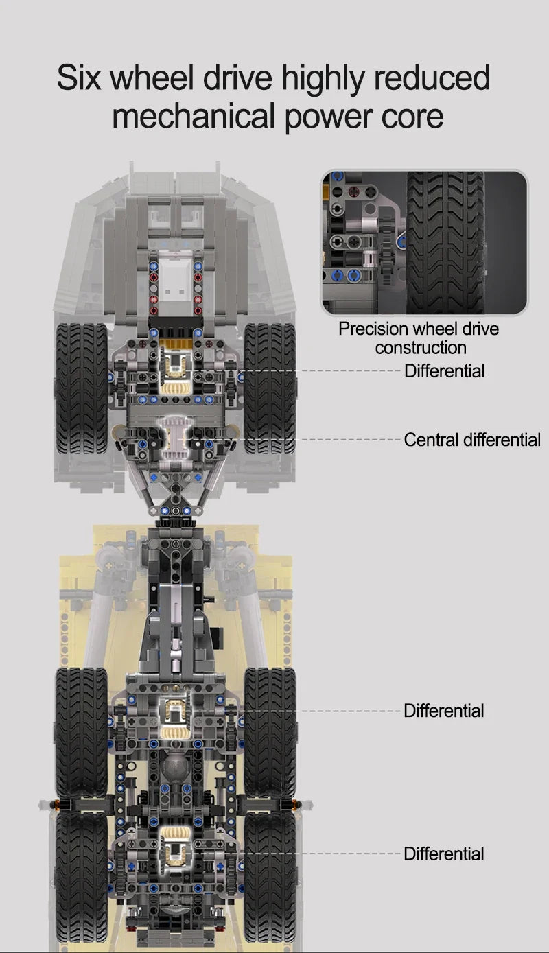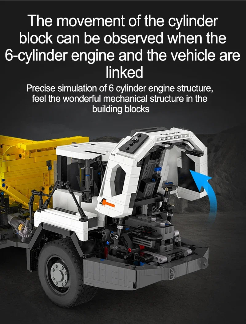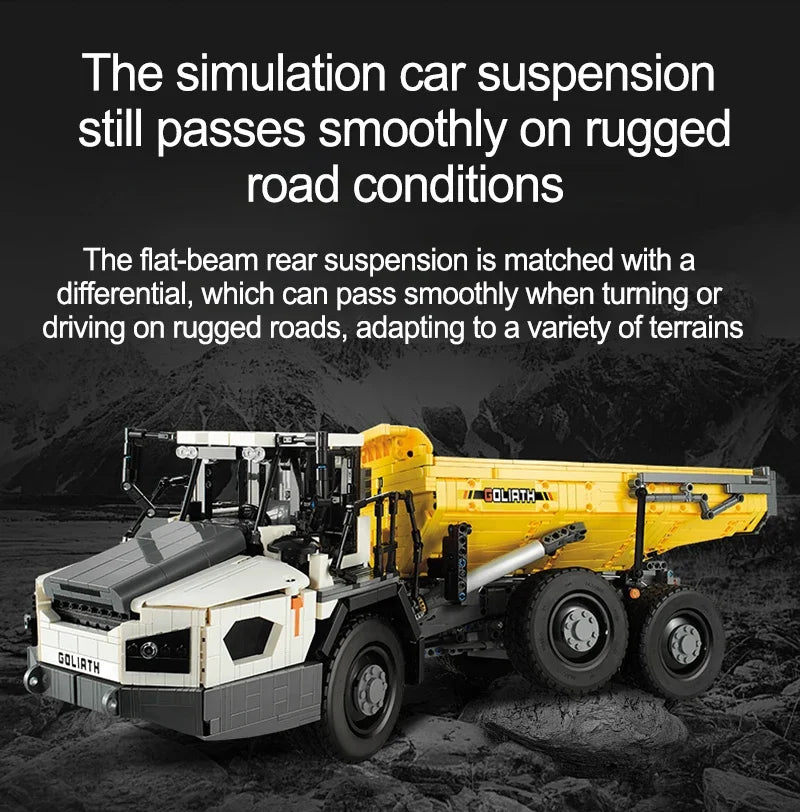 Experimentează senzația realistă de șantier: Un set complet de construcție cu 3067 de piese pentru basculante RC, care combină construcția creativă, distracția condusului cu telecomandă și tehnologia detaliată.