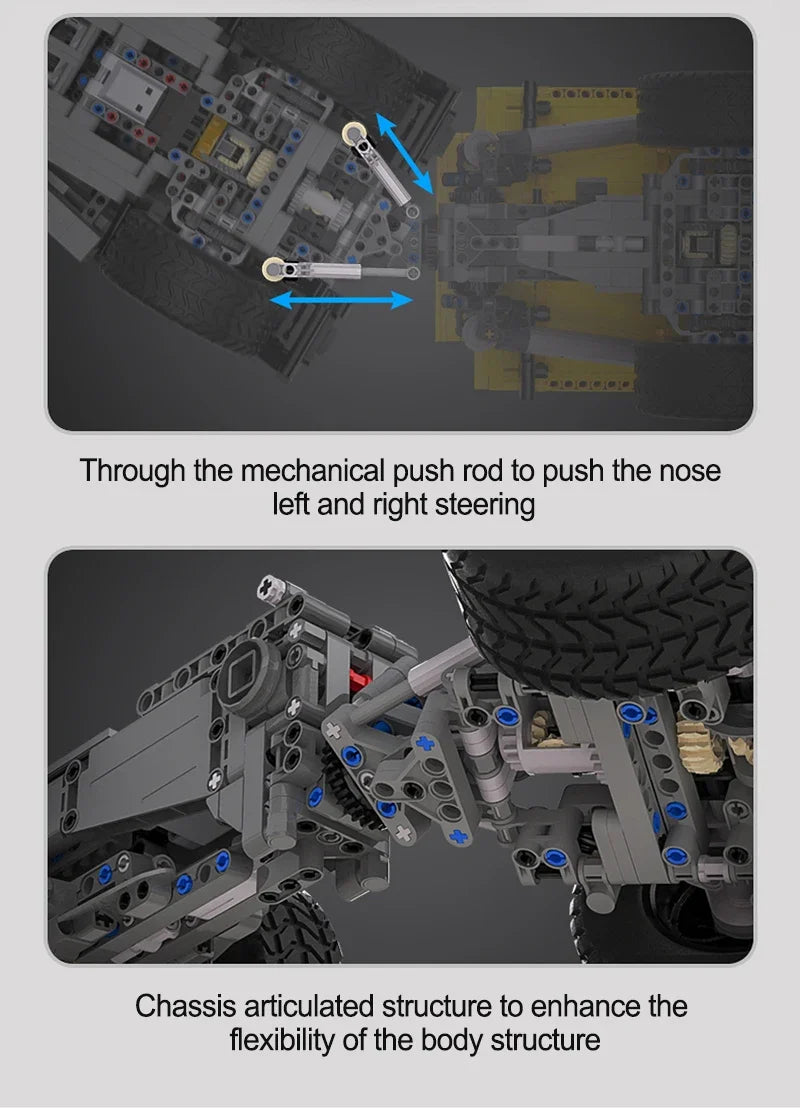 - Componente detaliate: Formele realiste și elementele mobile fac ca modelul finit să arate ca un vehicul de inginerie RC real.