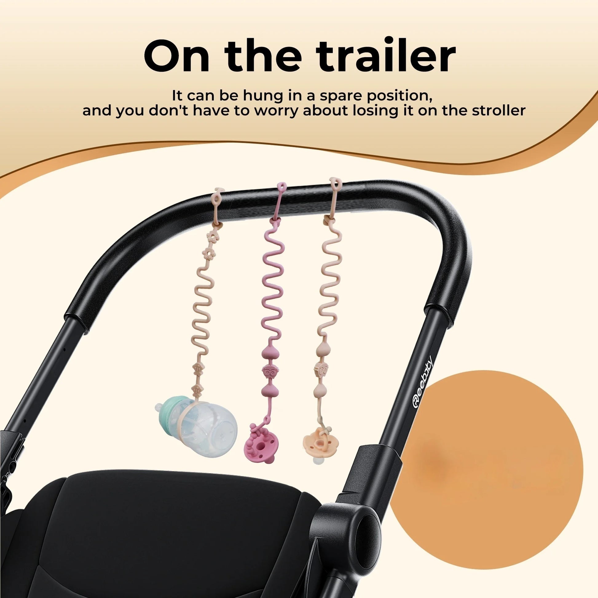 - Versatil: potrivit pentru suzete, biberoane, inele de dentiție și jucării - reduce căutarea obiectelor pierdute.