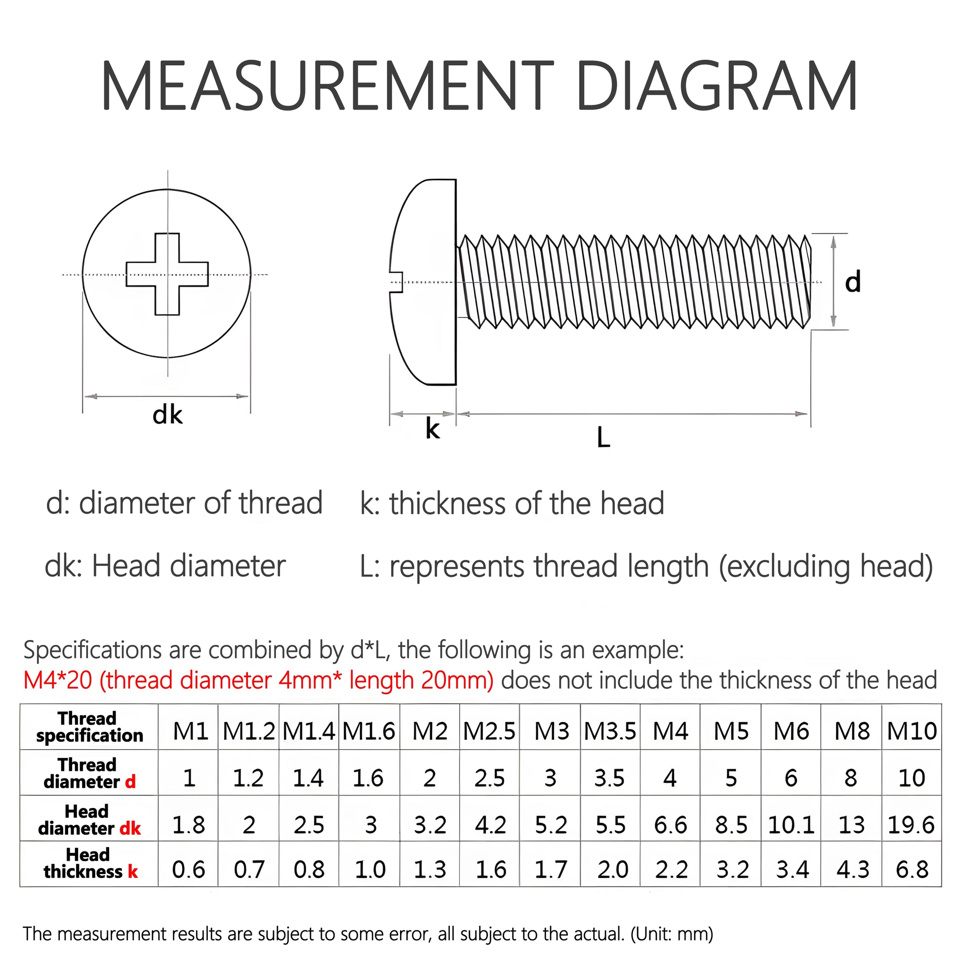 Șuruburi Phillips cu cap rotund pentru consumabile DIY - M2-M8 3-100mm