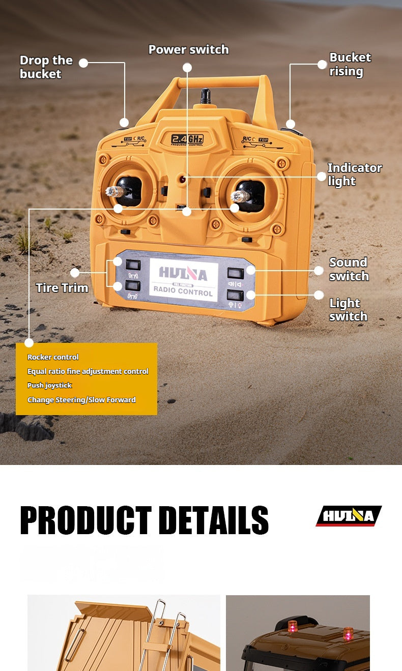 - Funcții realiste: Funcțiile multiple de control permit bascularea, conducerea, direcția precisă și controlul separat al suprastructurii pentru operațiuni din viața reală pe modele de jucării sau de șantier.