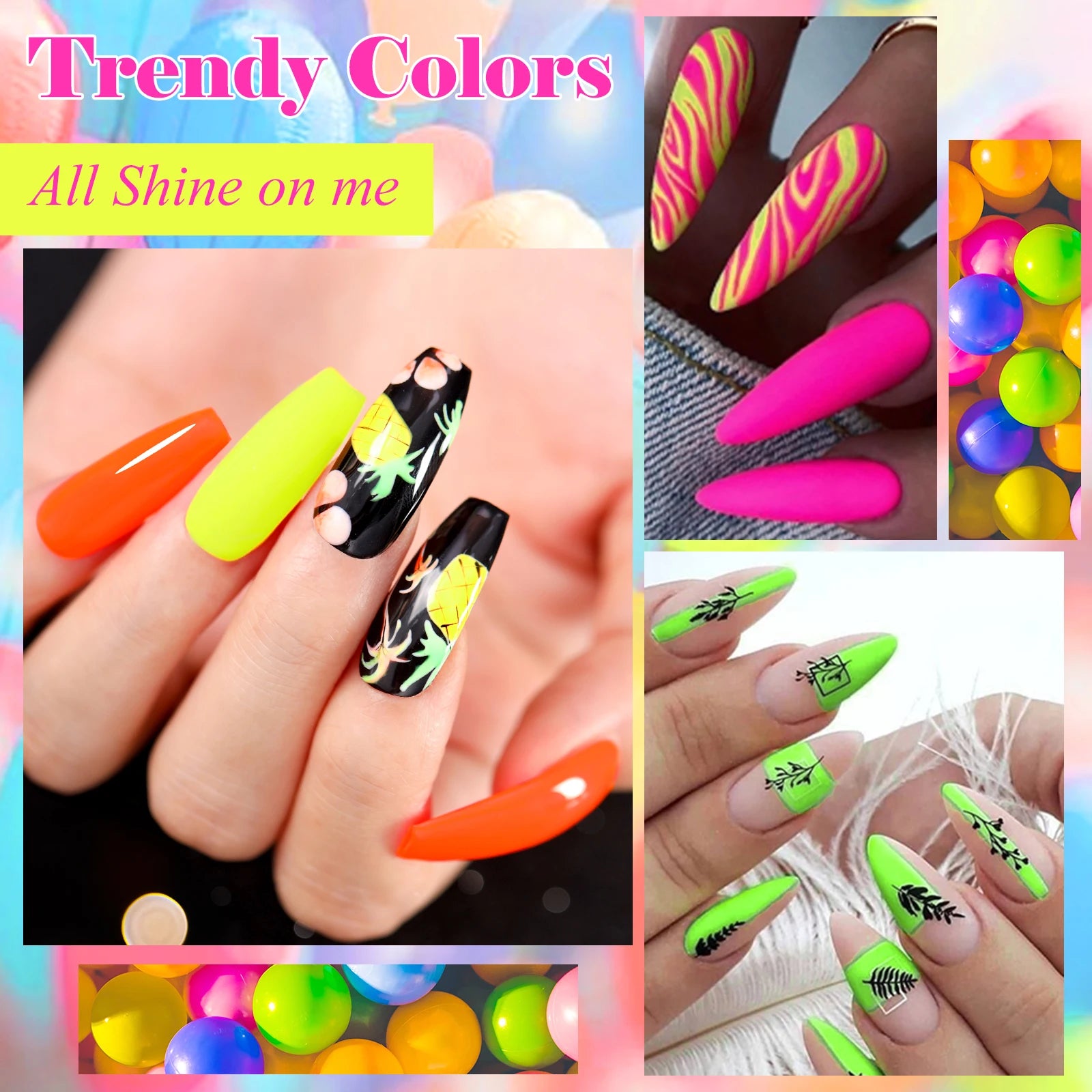 Transformă-ți unghiile în obiecte luminoase care atrag atenția: Șase culori de gel intens fluorescente pentru o manichiură UV/LED de lungă durată, cu un finisaj profesional.