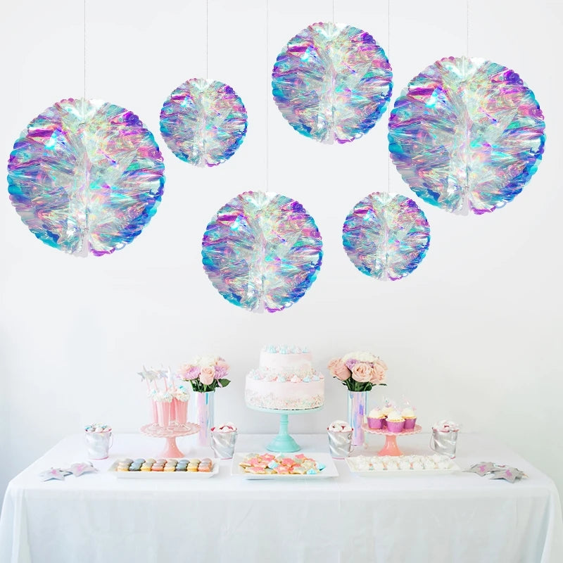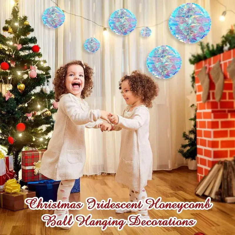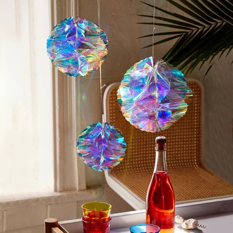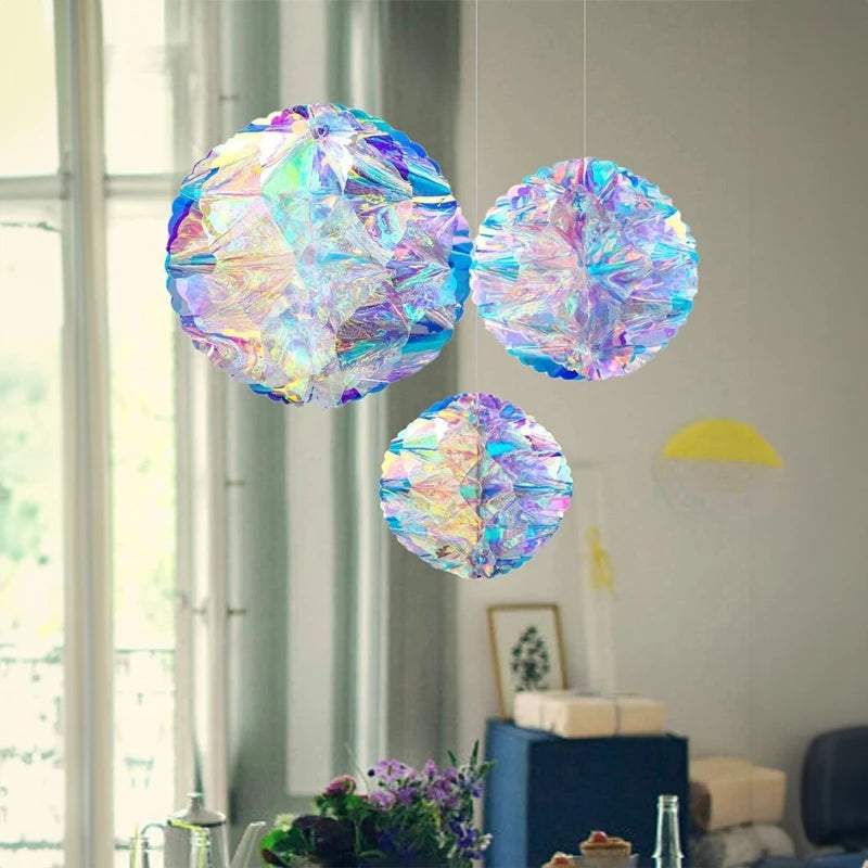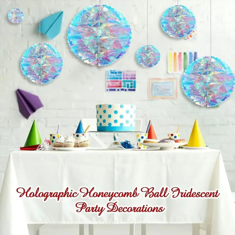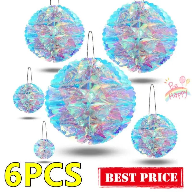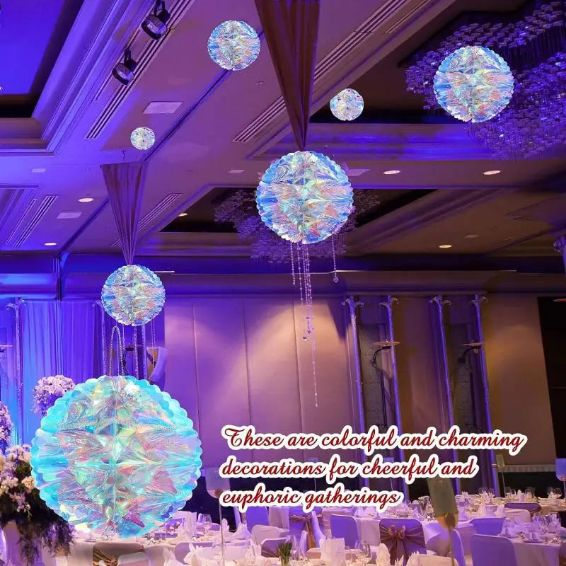 CN Irideszierende Wabenball Deko – Kunststoff, 6er Set, Größe variabel – Glänzender Blickfang für jedes Fest