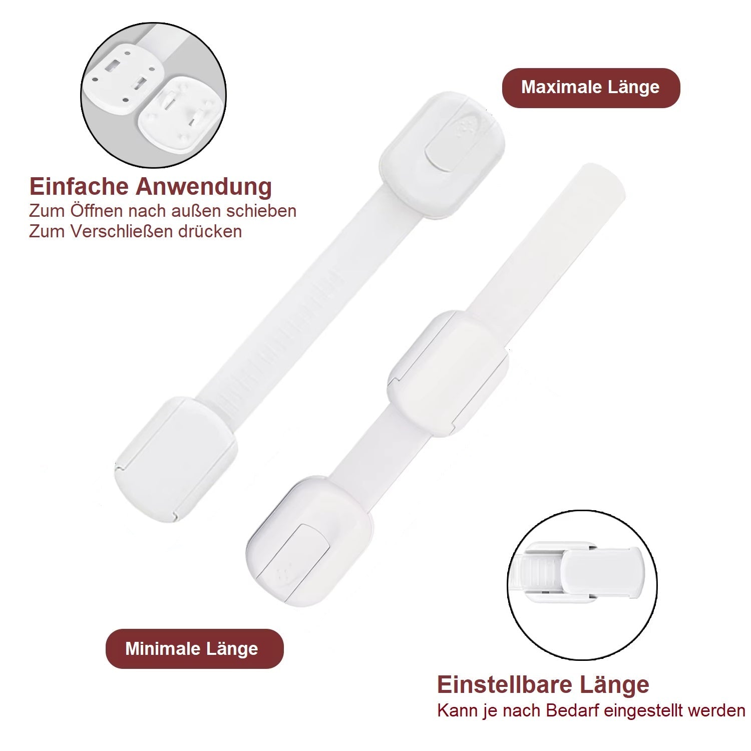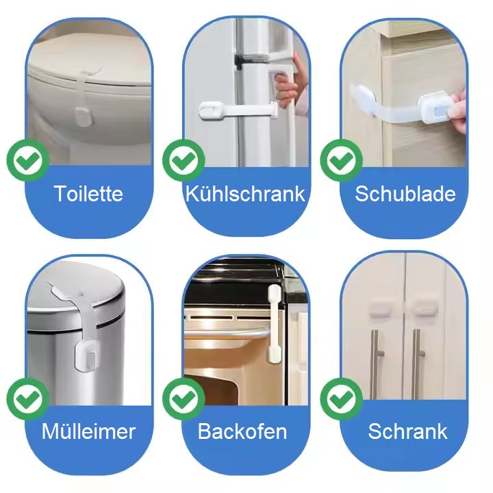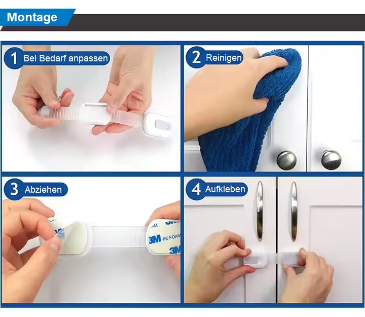 - Plasare flexibilă: Poate fi atașat la ușile dulapului, sertare sau alte margini de mobilier pentru a bloca diverse pericole.