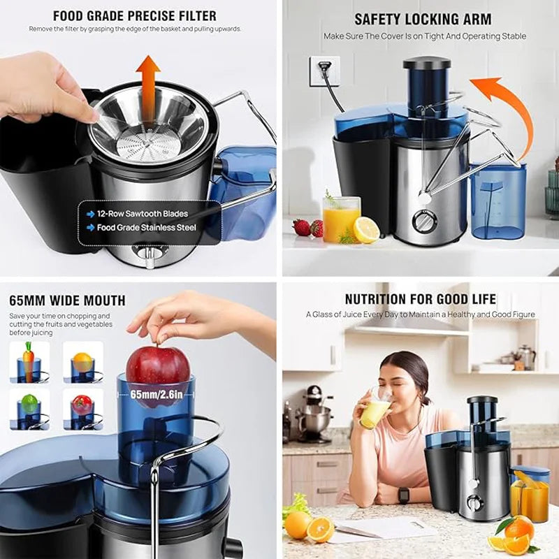 - Motor de 900 wați pentru stoarcere rapidă: reduce timpul de preparare și obține un randament ridicat de suc.