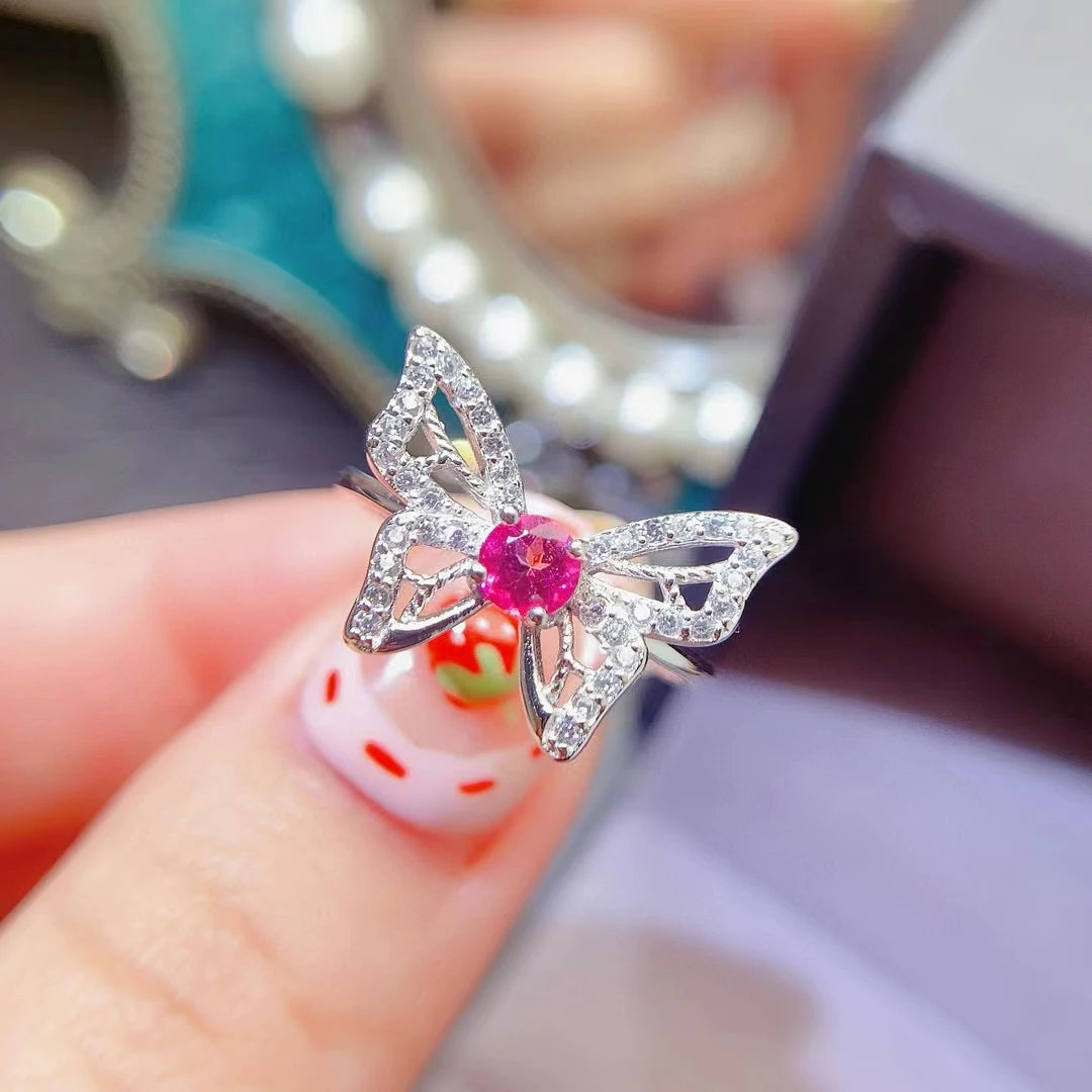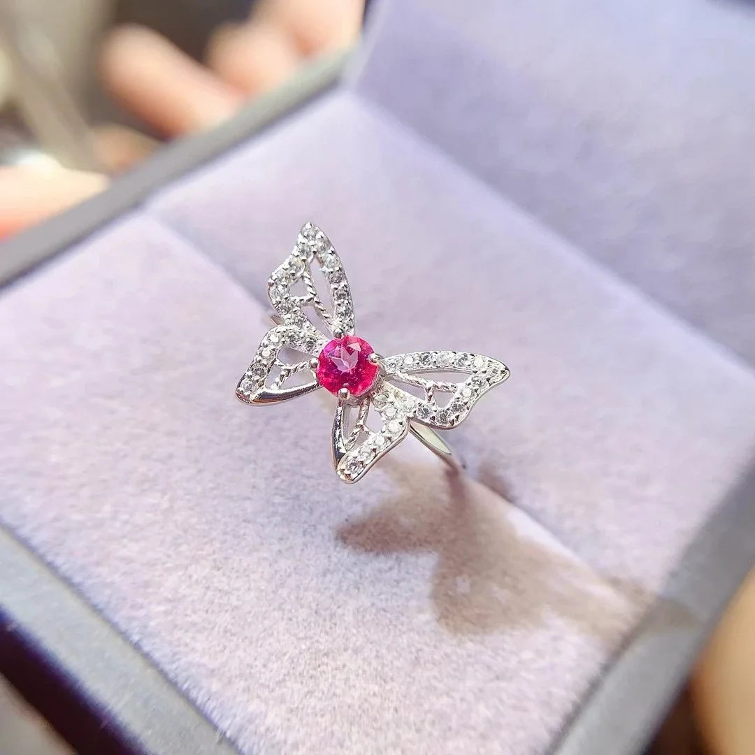 Un inel delicat din argint 925 cu un topaz roz de 0,3 ct în formă de fluture – ideal pentru femeile preocupate de stil care caută bijuterii discrete, cu o lucrare de înaltă calitate.