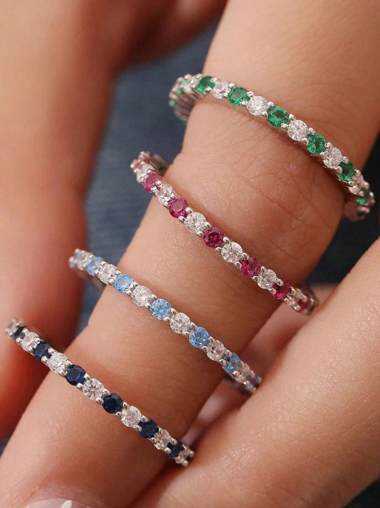 TXD0217 Inel din argint 925 cu zirconiu multicolor - Elegant, ușor de stivuit, pentru viața de zi cu zi și ocazii speciale
