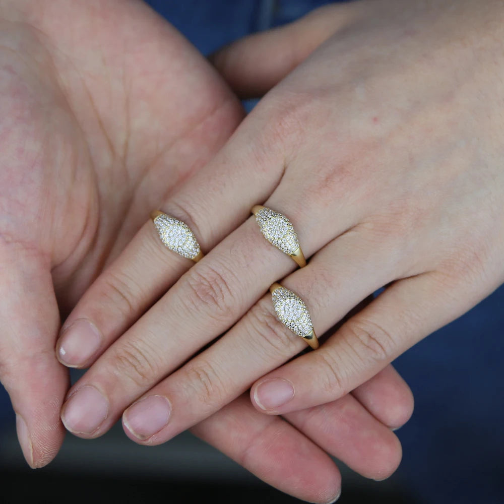 Acest inel bombat combină selecția atentă a materialelor și măiestria precisă pentru a vă oferi o bijuterie de lungă durată, care impresionează atât vizual, cât și tactil. Designul său curat și strălucirea delicată cu micro-pavaj îl fac o completare versatilă a colecției dvs. de bijuterii. Pentru a-i menține strălucirea de lungă durată, îngrijiți-l în mod regulat cu o cârpă moale și evitați contactul cu substanțe chimice dure.