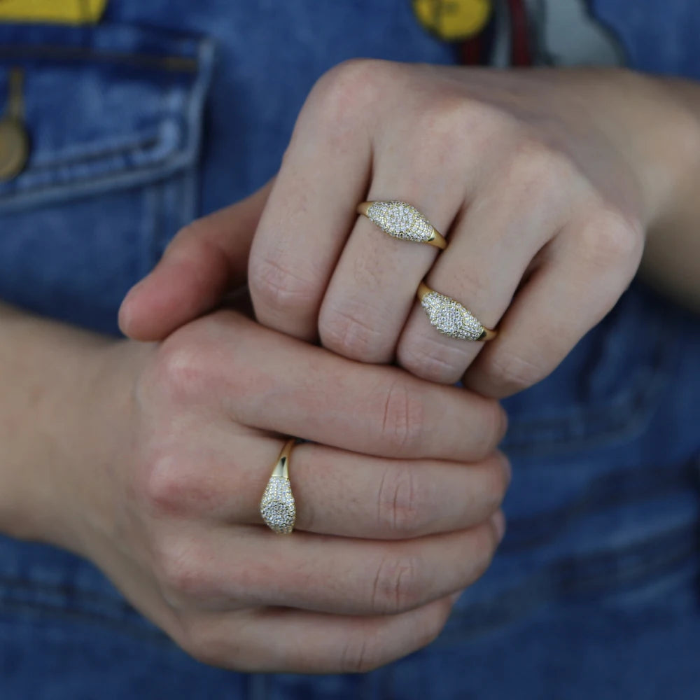 Un inel bombat atemporal, realizat din argint 925 cu zirconiu micro-pavat montat precis, care adaugă instantaneu o notă de eleganță ținutei tale.