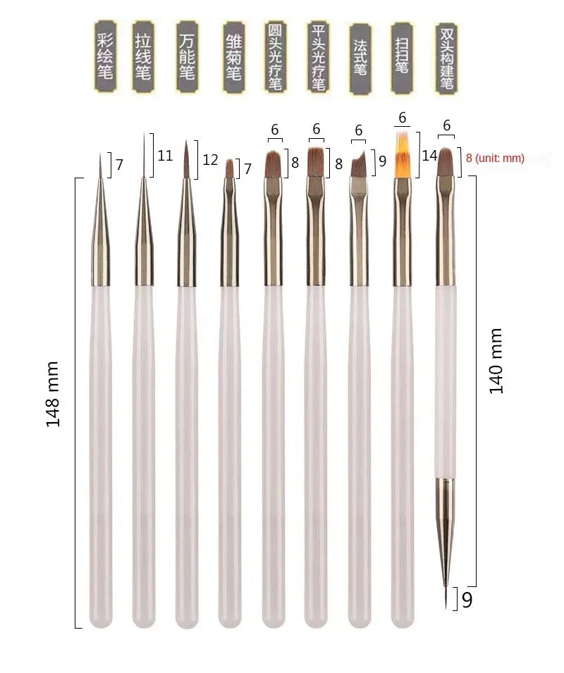 Set de 9 pensule pentru gel UV Choice Nail Art - Precizie și control pentru manichiură profesională
