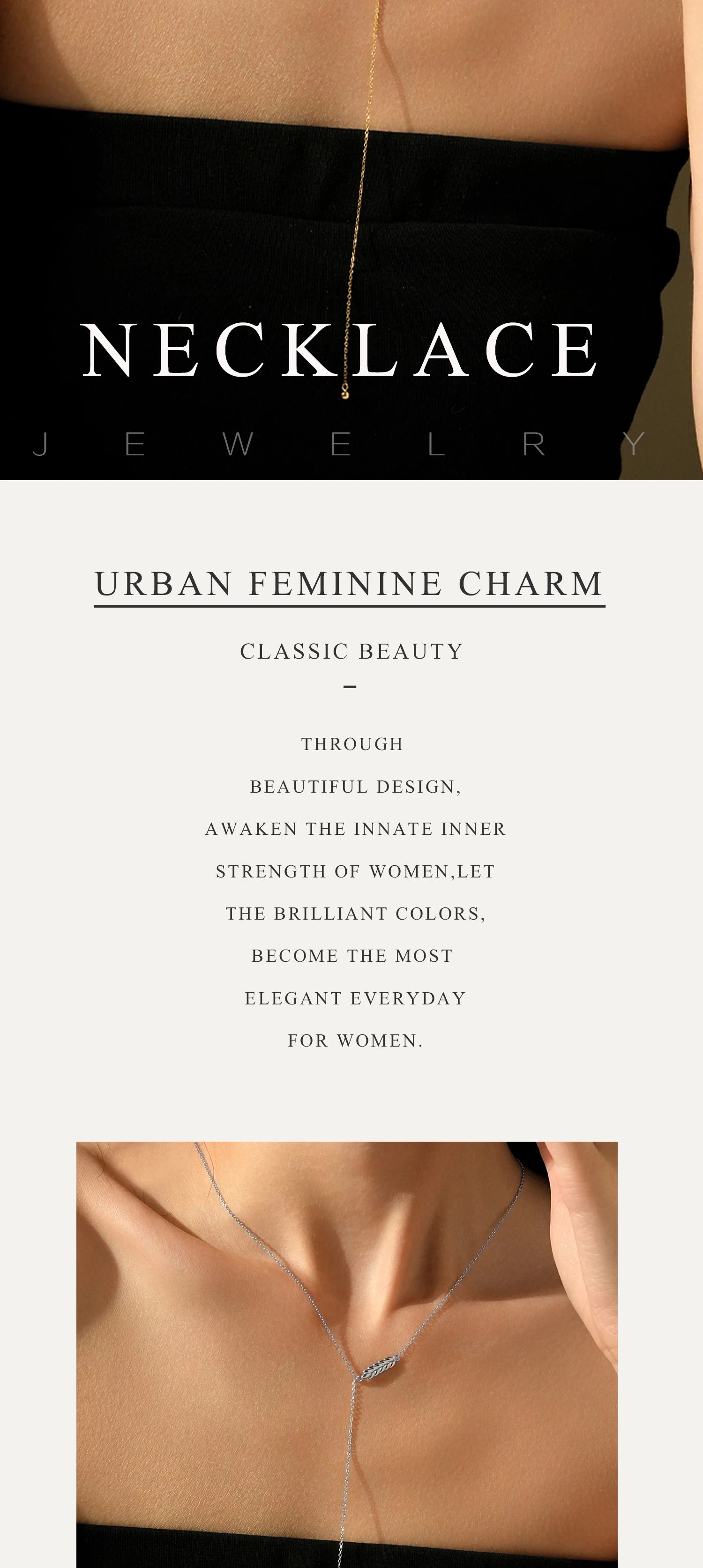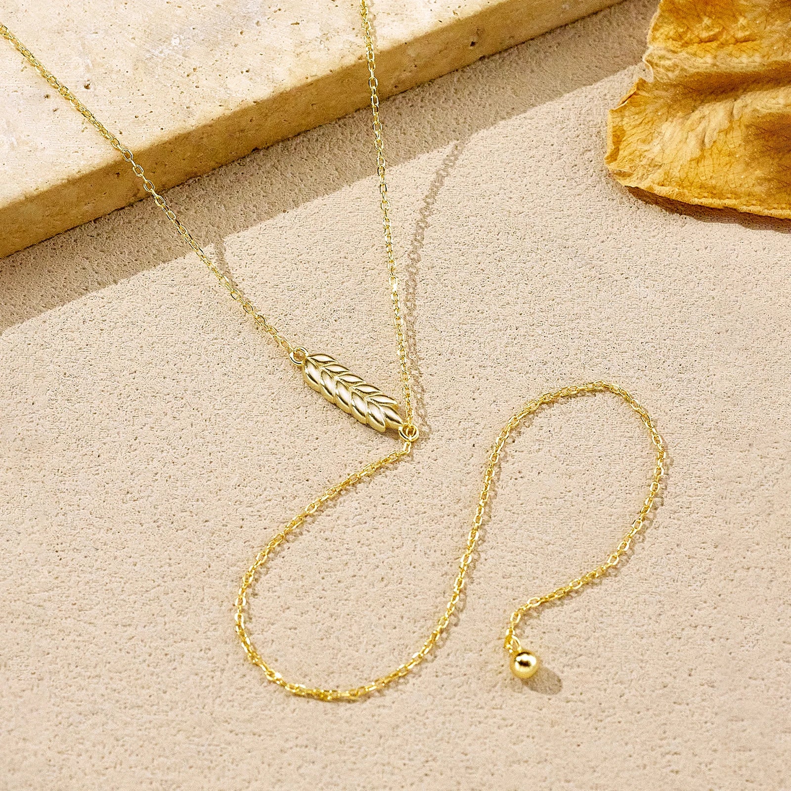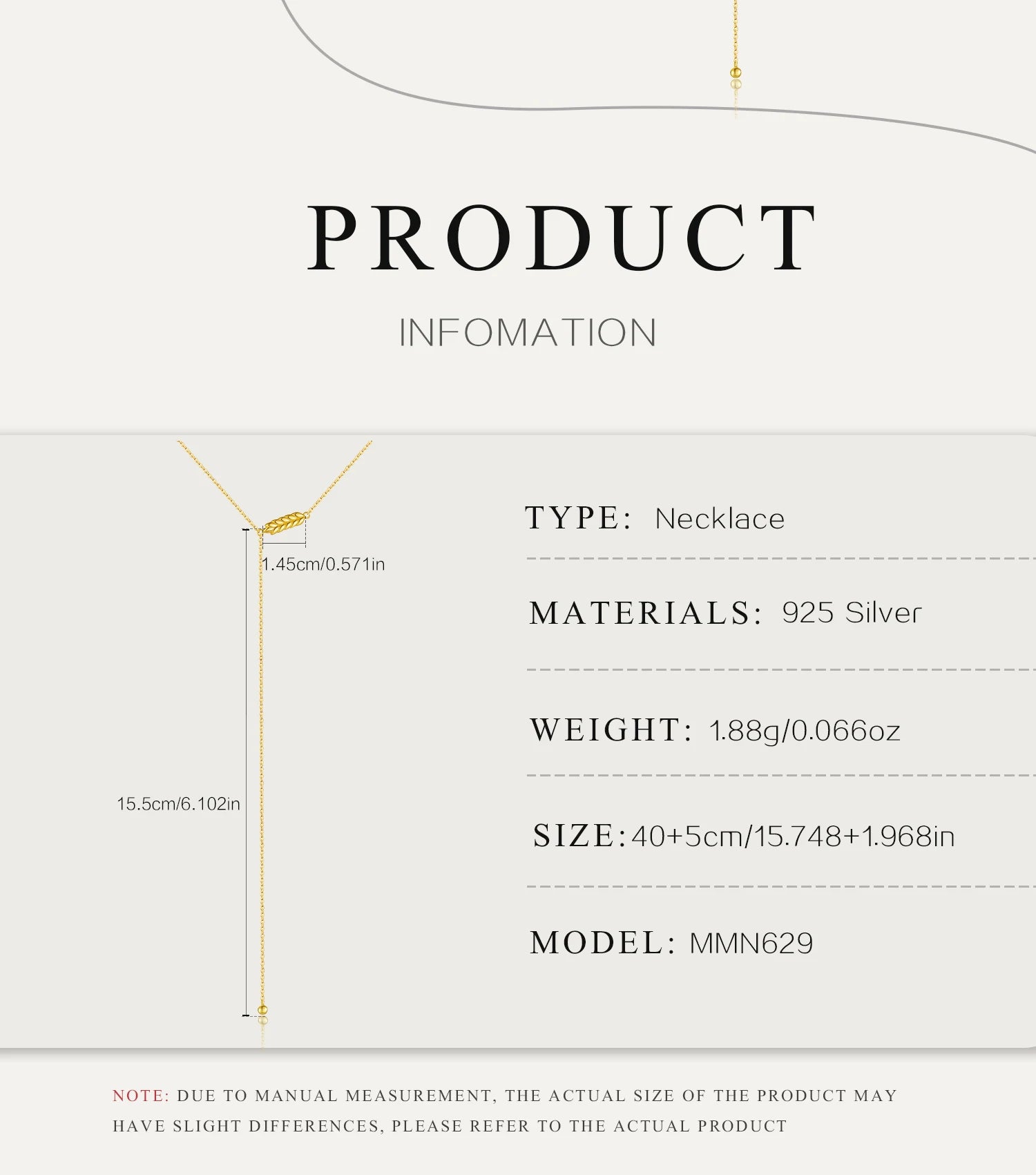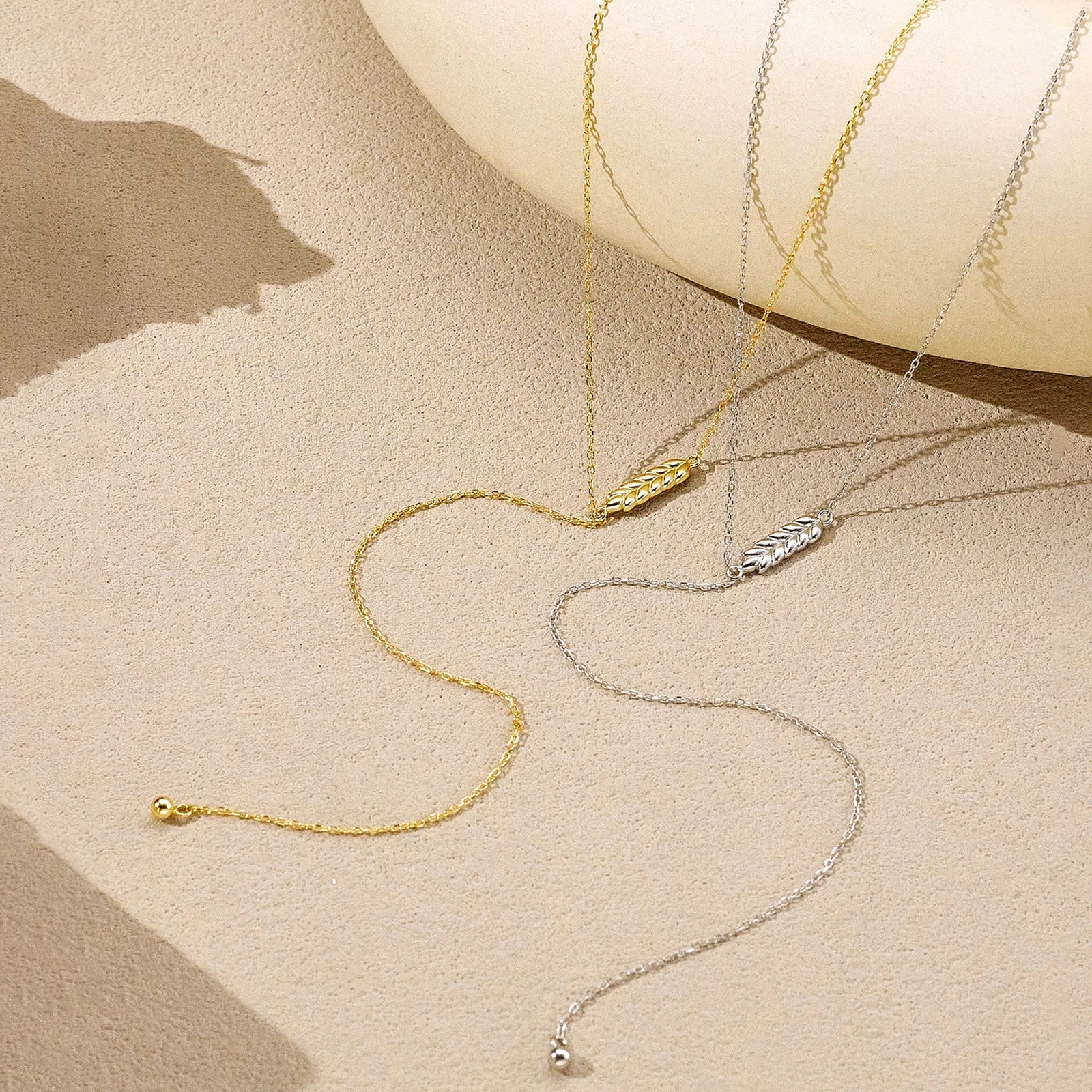 ANDYWEN Colier lung în formă de Y, cu pandantiv minimalist din argint 925, cu frunze de grâu, 2025, bijuterii fine pentru stil casual pentru femei