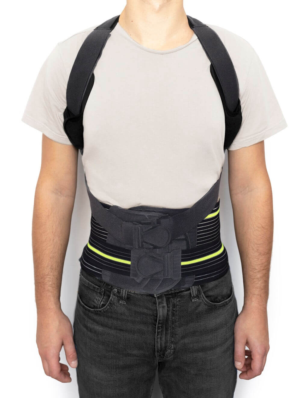 - Acoperire înaltă: Fiind o orteză lombară înaltă pentru ameliorarea durerii, această orteză oferă stabilizare completă și susținere a întregii părți lombare.