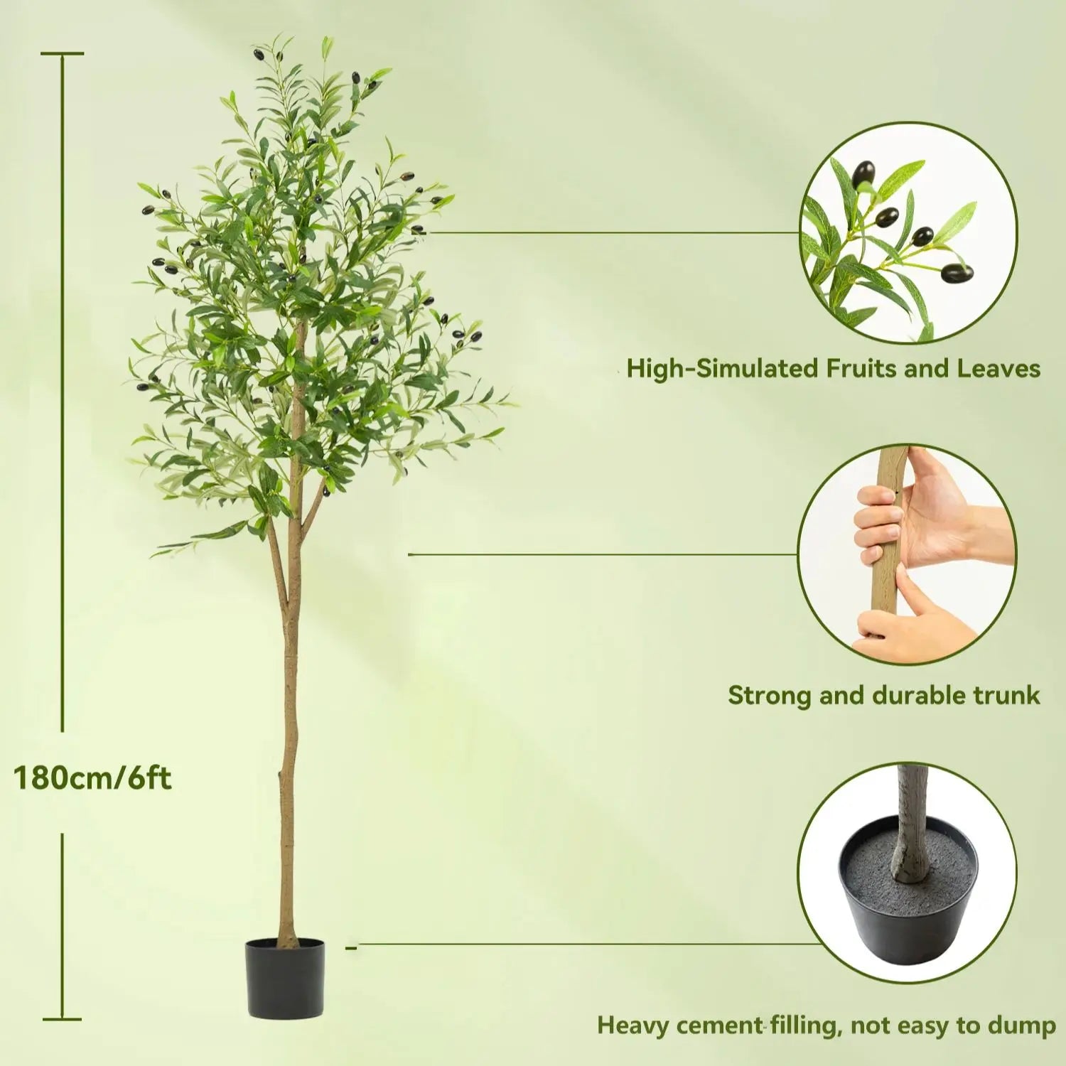 Măslin artificial 4/5/6 FT - Plantă artificială cu fructe, decorațiuni de Halloween, Crăciun, cameră de ghiveci, decorare