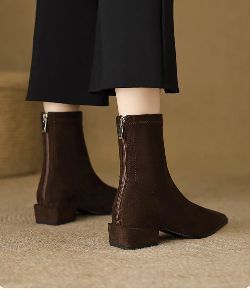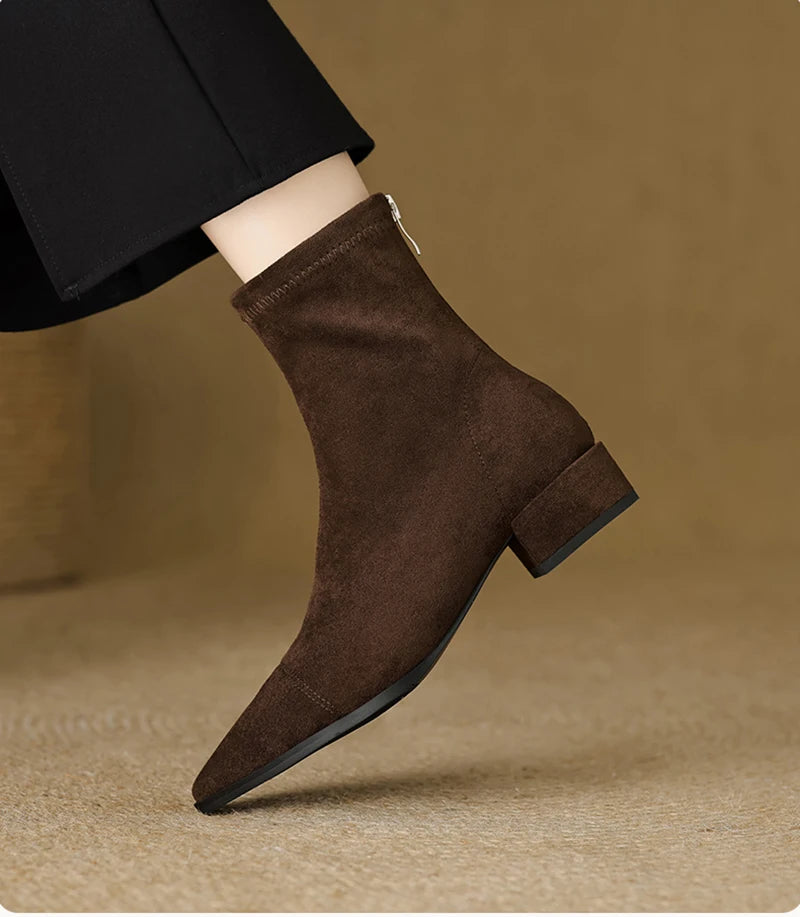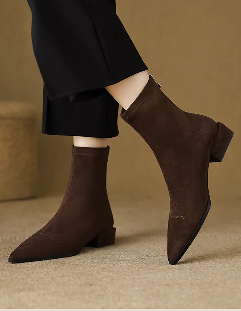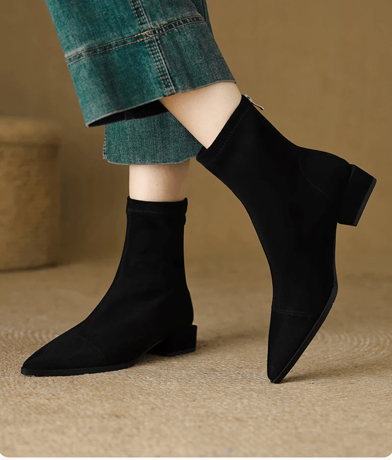 Ghete UETEEY din piele întoarsă cu vârf ascuțit - Înălțimea tocului 3-5 cm Căptușeală din microfibră Fermoar: Ghete elegante și confortabile pentru orice ocazie