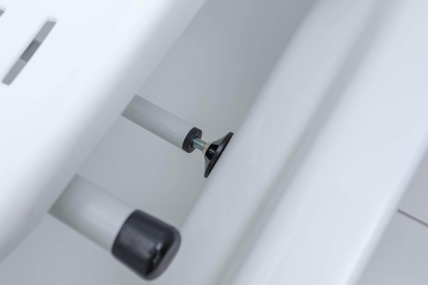 - Fixare sigură: Șuruburi de reglare și capace de susținere din cauciuc antiderapante pentru o fixare stabilă pe marginea căzii.