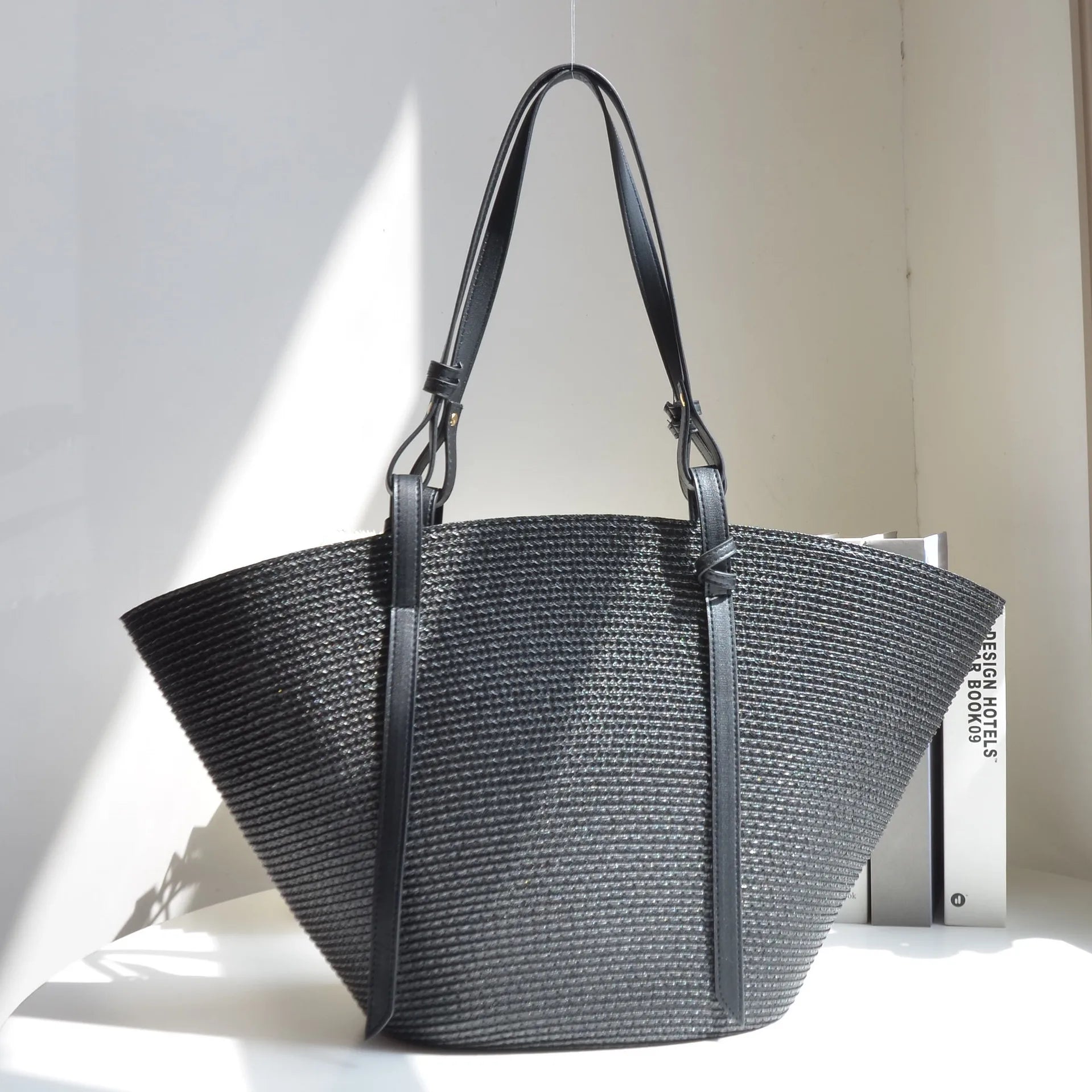 Genți de plajă de lux la modă țesute, geantă de umăr pentru femei, genți de mână din paie lucrate manual, tendință de vară, geantă de călătorie de mare capacitate 2023