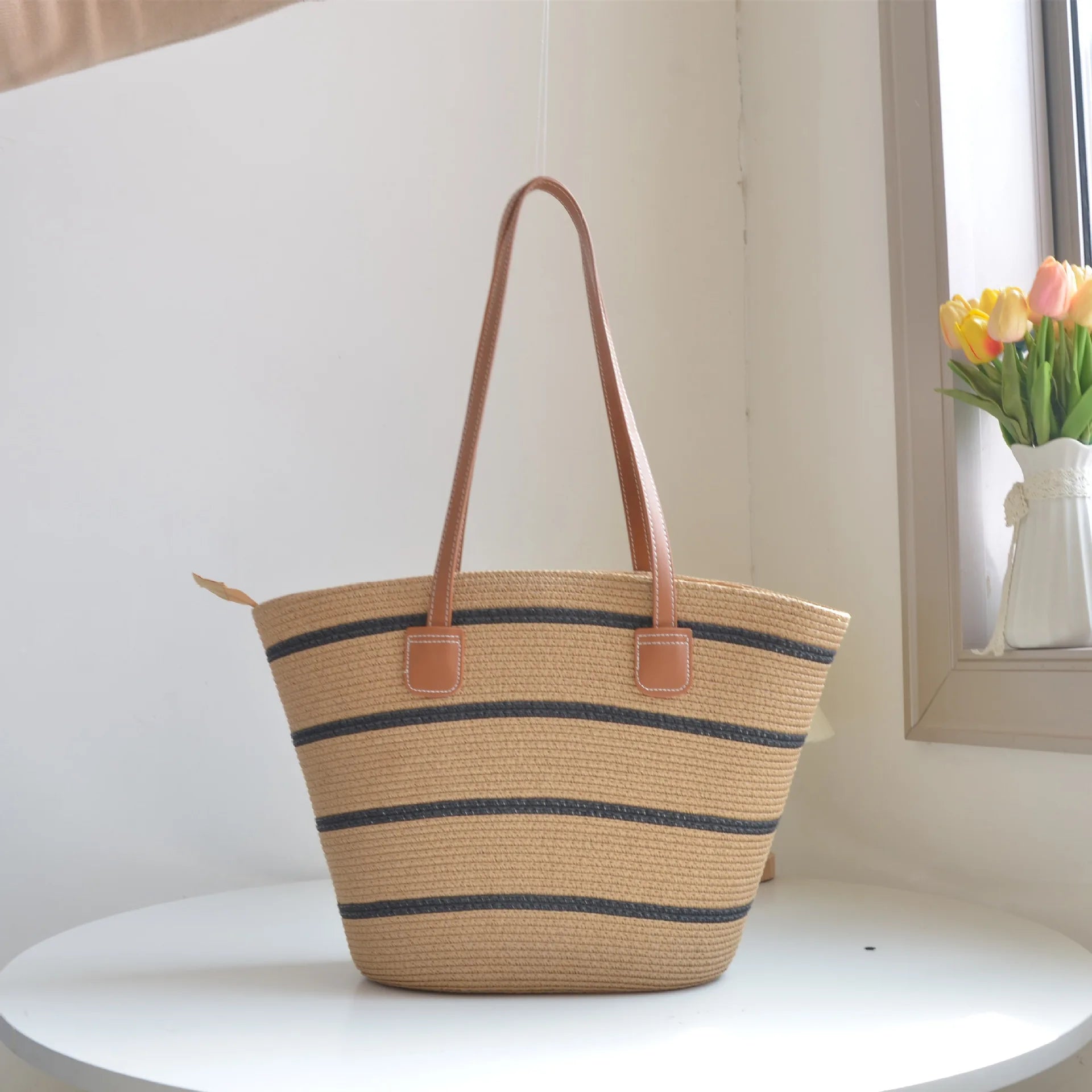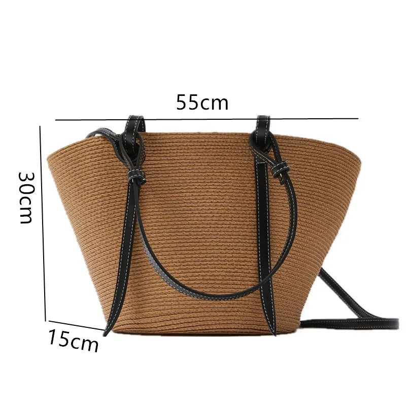 Geantă elegantă, țesută manual, din paie, cu o capacitate mare - perfectă pentru plajă, plimbări în oraș și călătorii, combinând confortul cu designul modern.