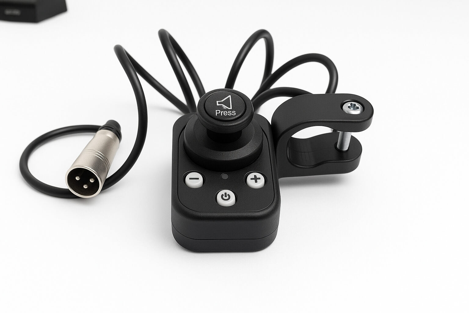 💡 Sfat: Acest accesoriu este opțional – scaunul cu rotile funcționează și fără această comandă. Ideal pentru îngrijitori sau membri ai familiei.