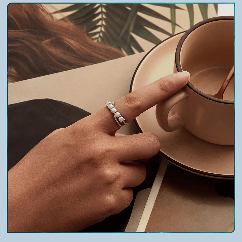 Un inel sofisticat, cu perle duble, realizat din argint sterlin 925 și decorațiuni delicate cu zirconiu, care adaugă instantaneu o notă feminină și sofisticată oricărei ținute. Această bijuterie combină materialele clasice cu designul modern, asigurând un aspect încrezător atât pentru ocazii speciale, cât și pentru purtarea de zi cu zi.