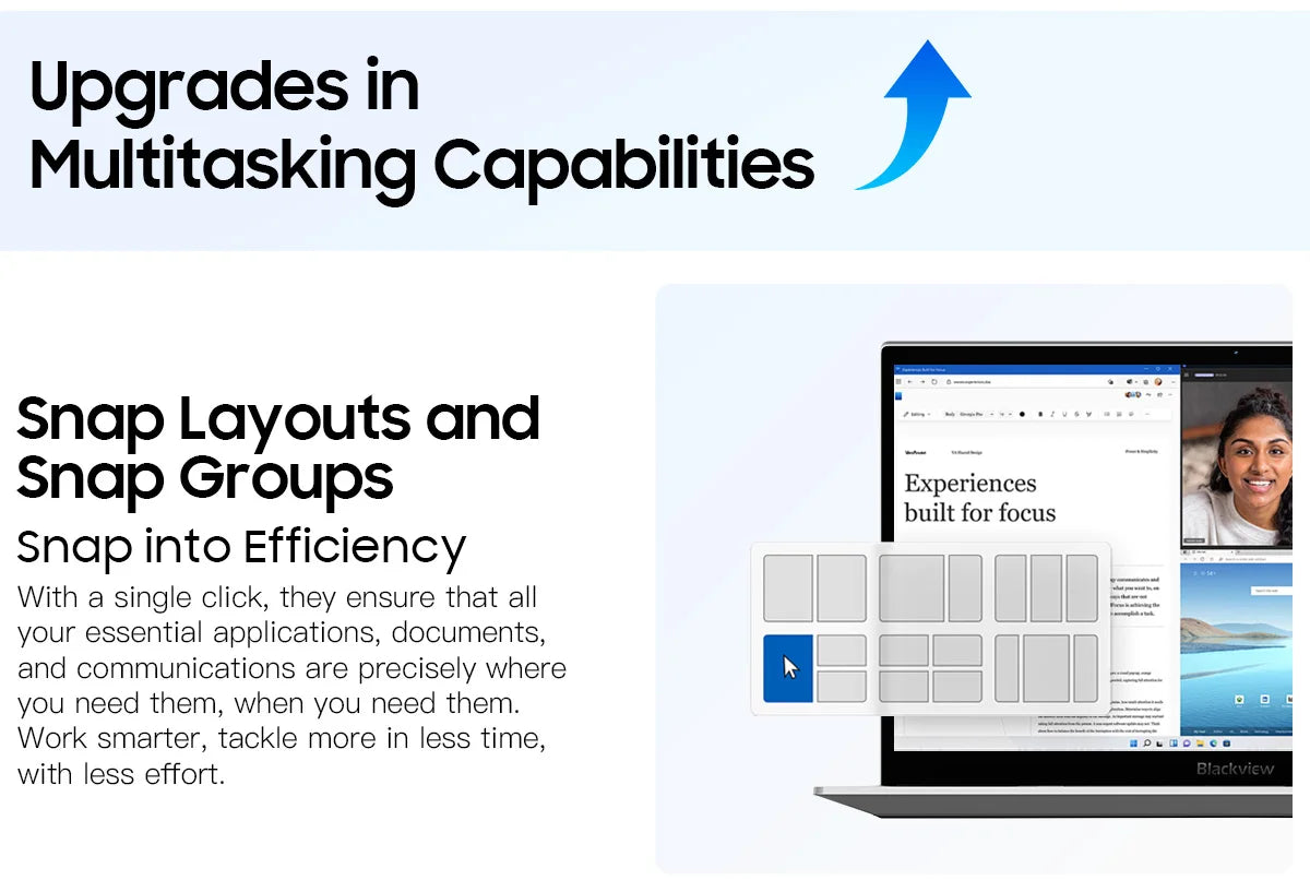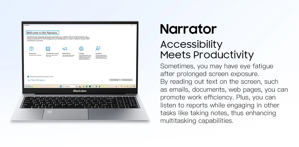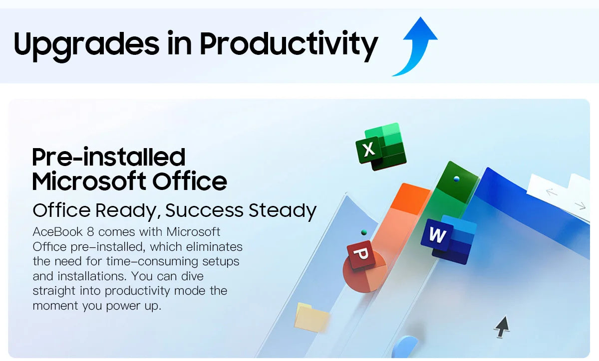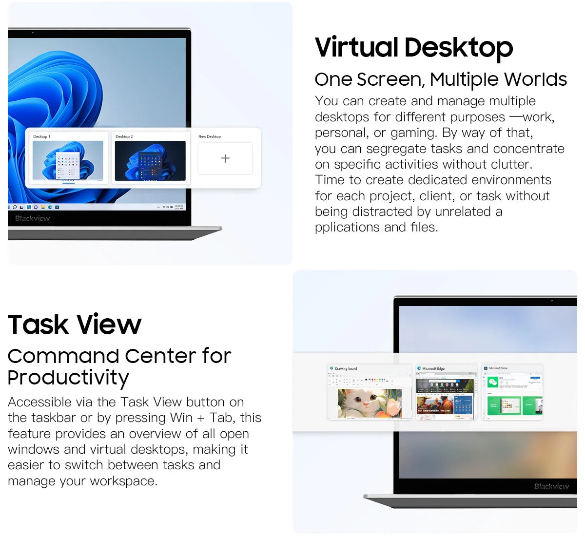 Blackview AceBook 8 combină un ecran Full HD mare cu un procesor Intel rapid și o memorie RAM generoasă, permițându-vă să rulați fără probleme aplicații solicitante și să lucrați eficient din mers.