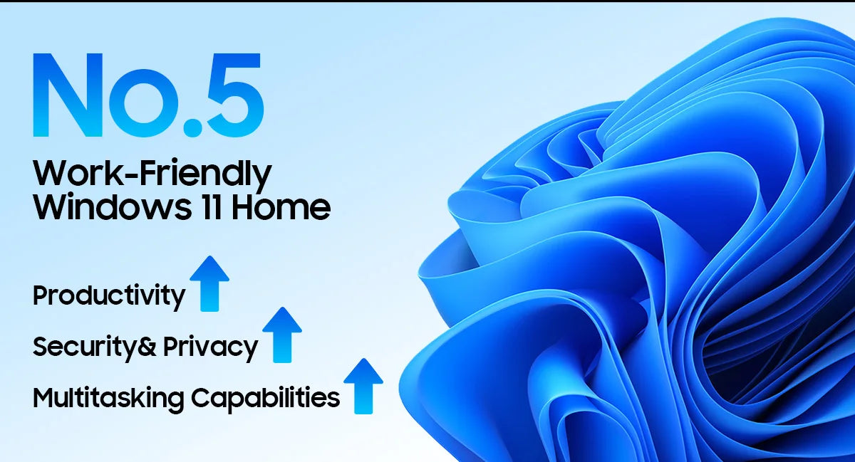 - Windows 11 Home oferă o interfață de utilizator modernă, o bună compatibilitate cu software-ul standard și actualizări de securitate regulate.