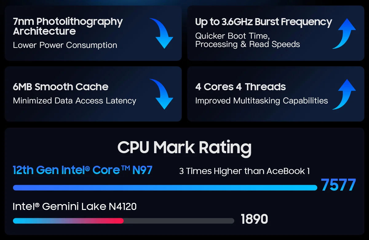Laptop Blackview AceBook 8 15.6" 12th Gen Intel Alder Lake N97 16GB RAM 512GB SSD + extensie până la 1TB Windows 11 Home 15.6"