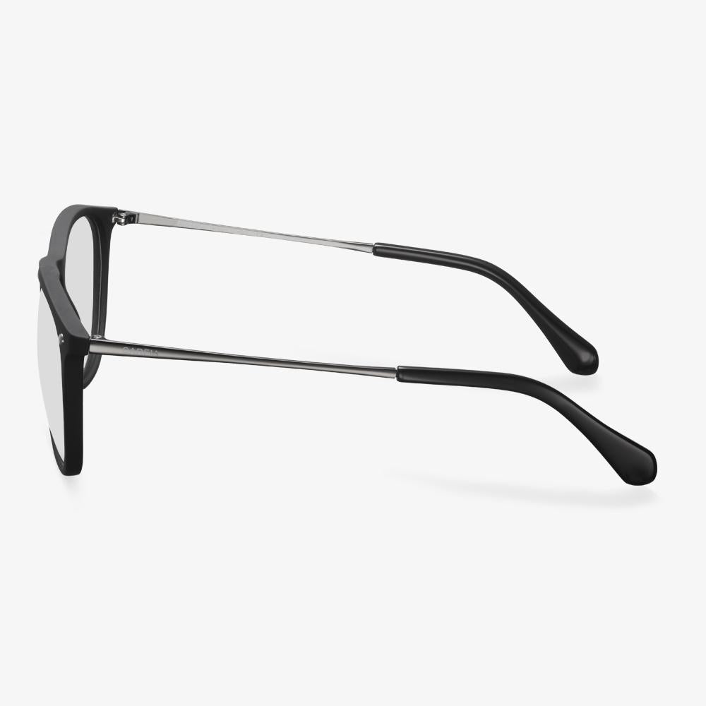 The oversized glasses frame is perfectly complemented by the Matte Black finish. The mixed material of this frame means it is extra comfortable and good for all-day wear. The large lenses and keyhole nose bridge add a touch of boldness to this frame that skillfully walks the line between subtle and statement-making.
