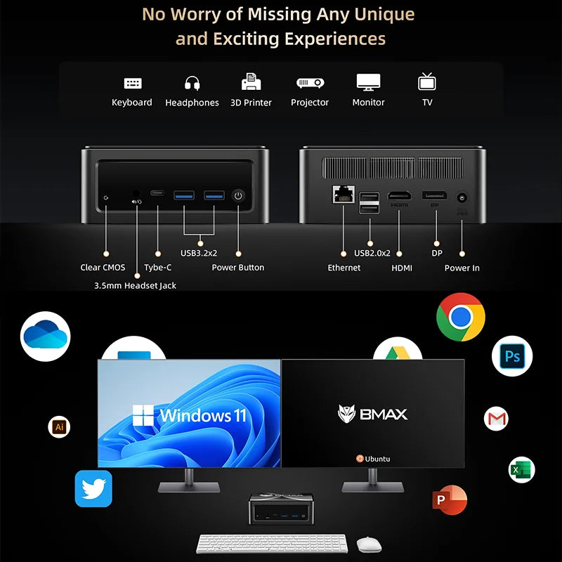 - Mini PC BMAX B5A PRO (512GB NVMe, 16GB DDR4)