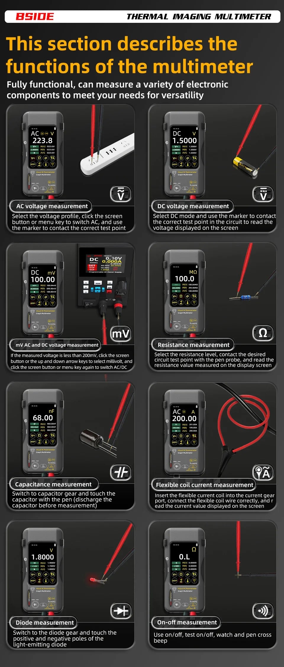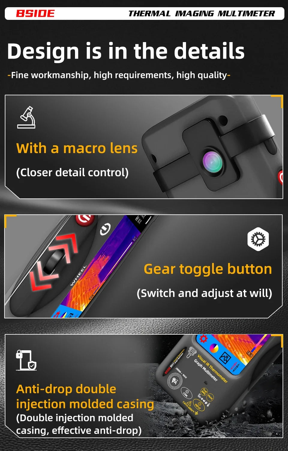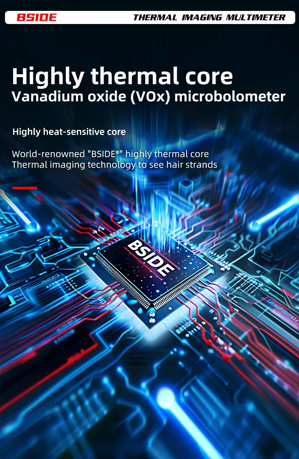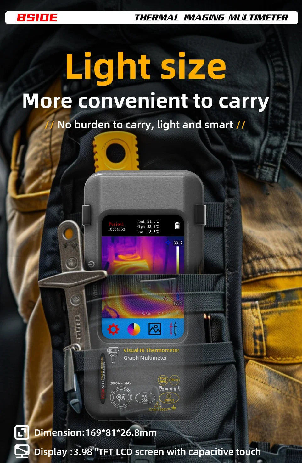 BSIDE SH7 combină termografia de înaltă rezoluție cu un multimetru digital într-un singur dispozitiv compact – pentru depanare rapidă, sigură și precisă a componentelor electronice, mașinilor și clădirilor.