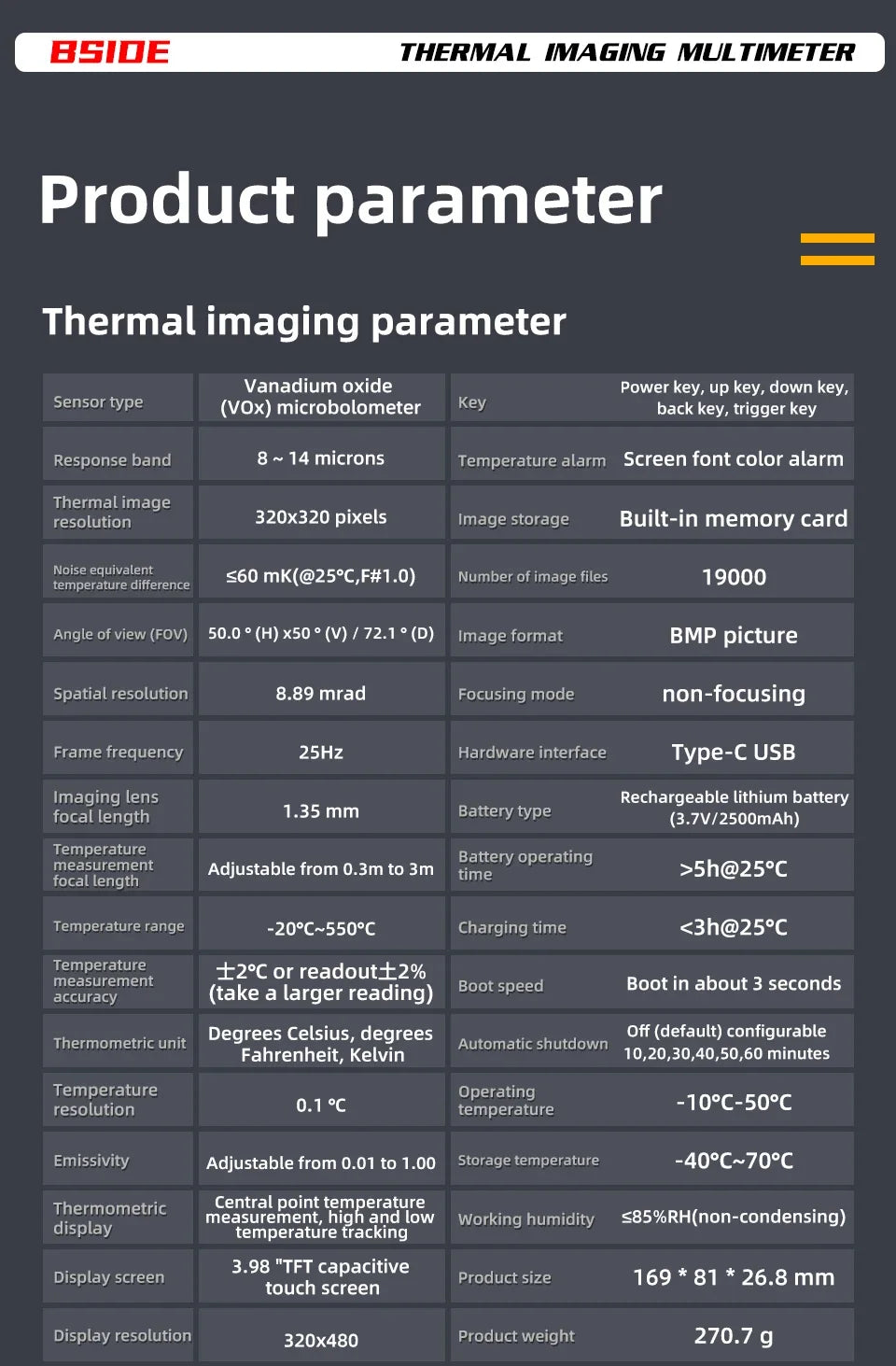 - Cameră de termoviziune BSIDE SH7 cu multimetru digital integrat