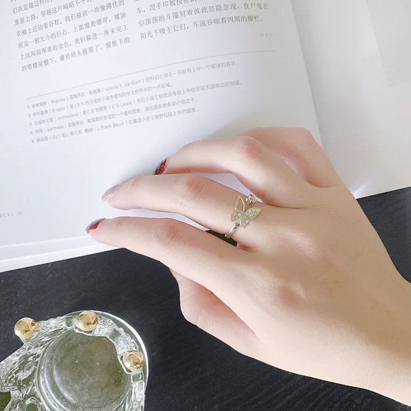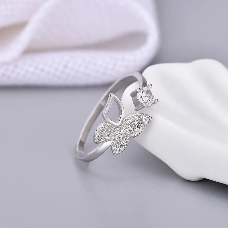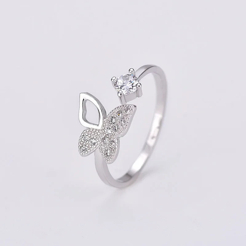 Buyee 925 Sterling Silver Ring Sweet Butterfly Drăguț Fluture Zircon Alb Inel Deschis pentru Femei Fashion Trend Fine Jewelry Circle