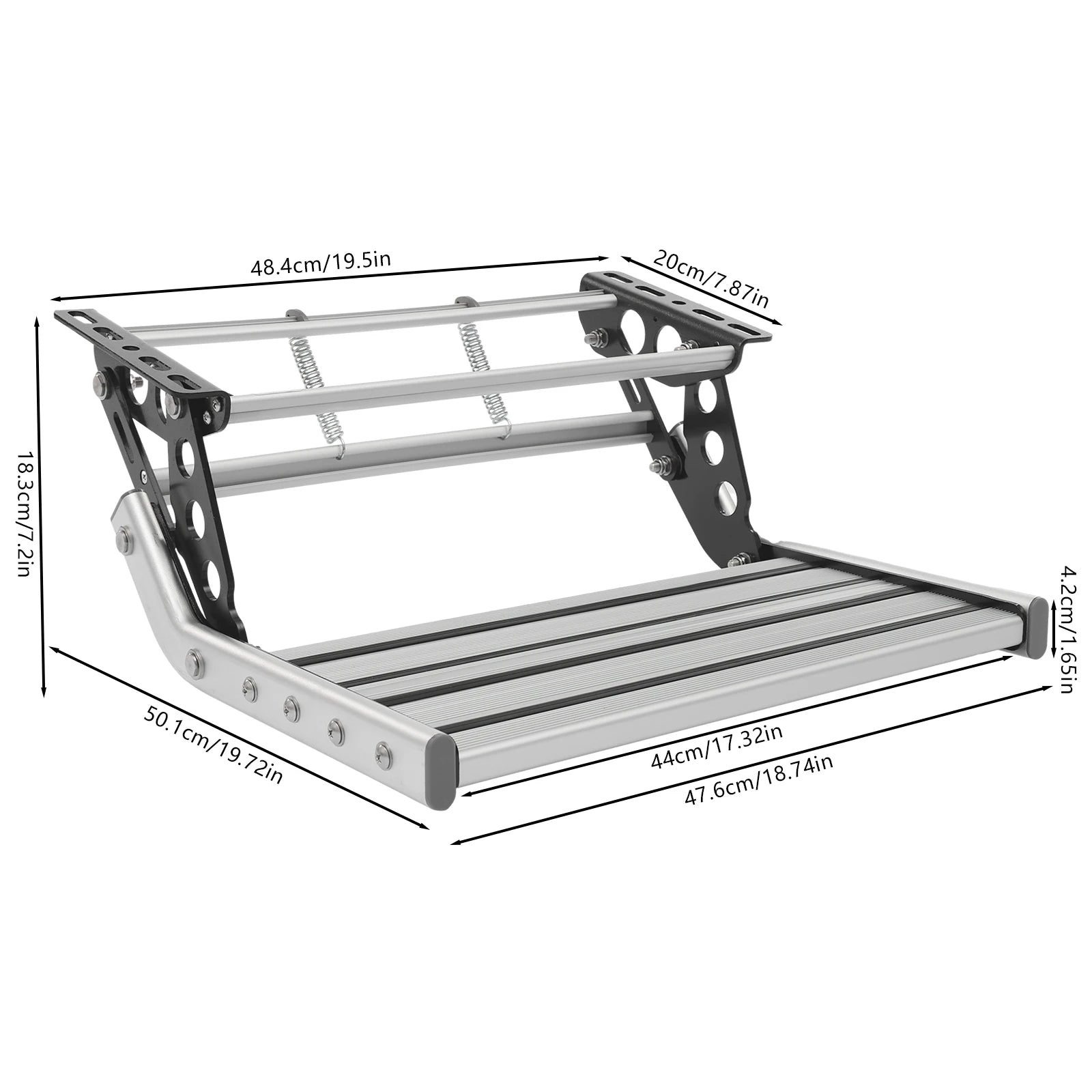 - 1 x Treaptă manuală Bymaocar pentru rulotă cu lumină LED de 12V (aluminiu)