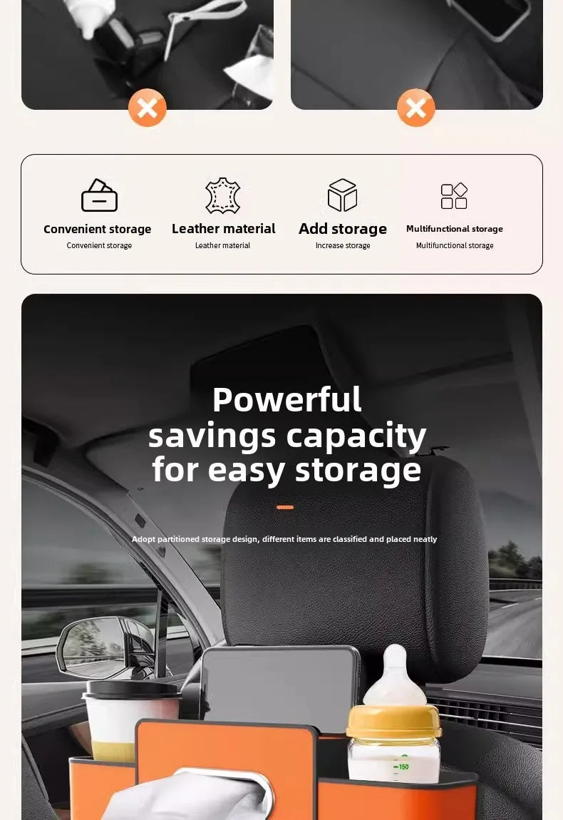 - Tip funcțional: Suport pentru spătarul scaunului cu cutie de depozitare multifuncțională
