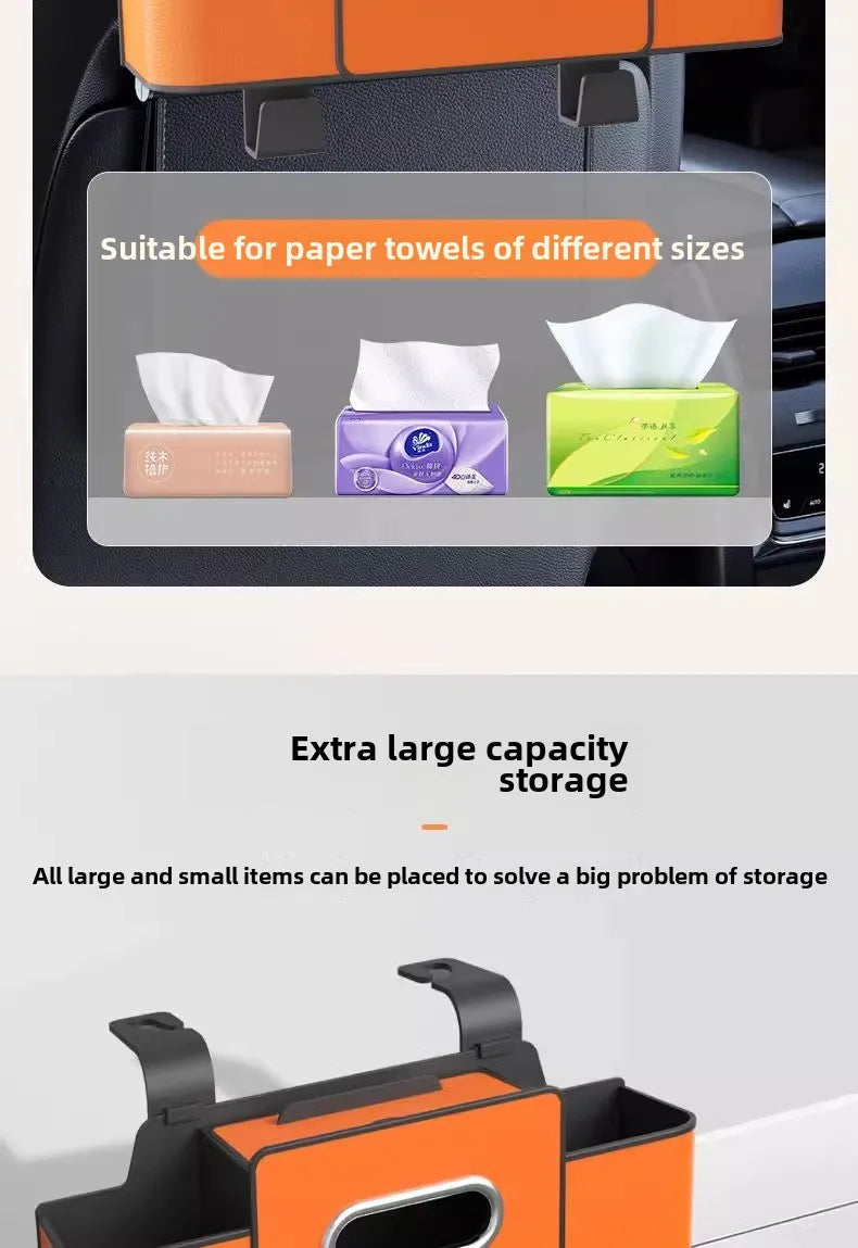 Scaun auto spate banchetă piele multifuncțională cutie de depozitare cutie de șervețele auto geantă de depozitare suport pentru pahare de apă cu cârlig cutie de depozitare