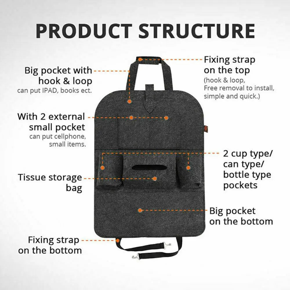 - 1 x Geantă de depozitare pentru spătarul scaunului auto (multifuncțională, reglabilă)