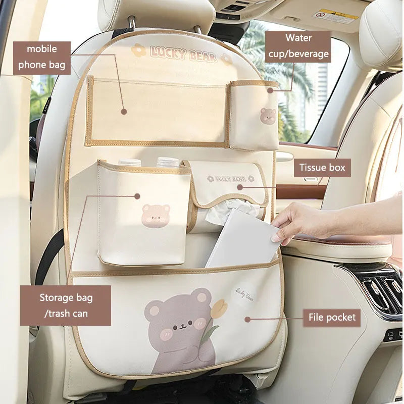 - 1 x Geantă de depozitare pentru spătarul scaunului auto, organizator ursuleț iepuraș (organizator spătar scaun)