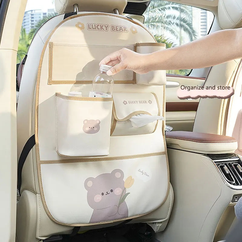 Scaun auto spate depozitare geantă organizator urs iepuraș multifuncțional scaun spate auto anti-murdar anti-lovitură depozitare pad accesorii auto