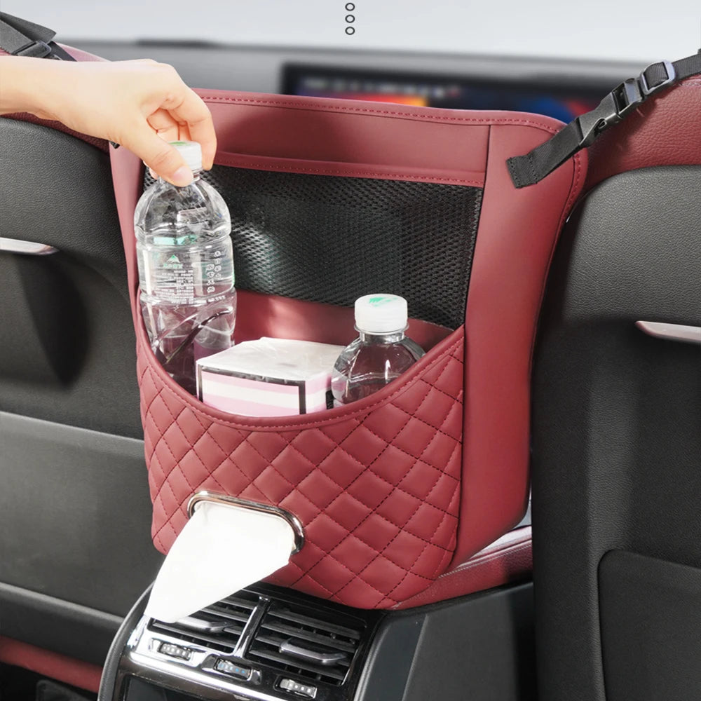 Organizați-vă vehiculul eficient: Organizatoare elegante din piele PU care păstrează băuturile, șervețelele, gențile de mână și obiectele mici la îndemână și în siguranță.