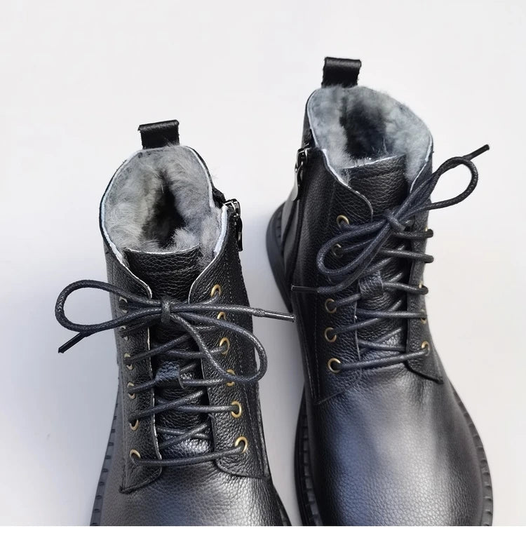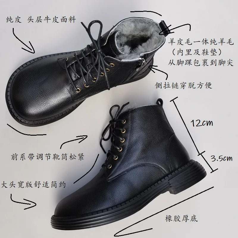 Aceste ghete combină pielea de vacă de înaltă calitate cu o căptușeală călduroasă din lână și un toc bloc stabil de 3-5 cm – ideale pentru confort elegant iarna.