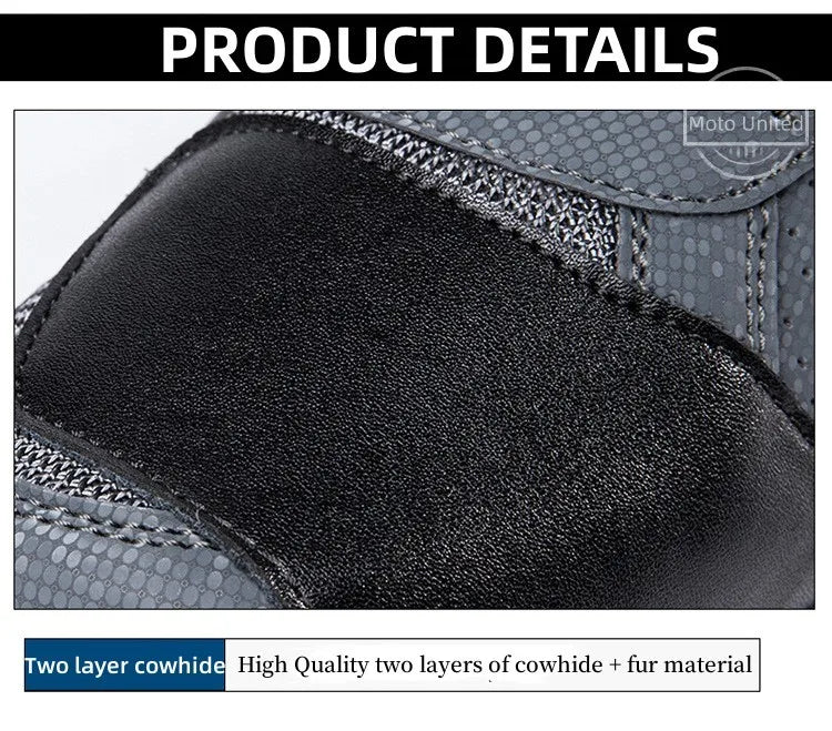 Ghete din piele de vacă de înaltă calitate, cu talpă antiderapantă din cauciuc, pentru tracțiune maximă și confort de lungă durată la fiecare plimbare. Aceste ghete de motocicletă sunt concepute pentru a oferi motocicliștilor cea mai bună siguranță, confort și durabilitate posibile - ideale atât pentru naveta zilnică, cât și pentru motocicliștii off-road și recreaționali.