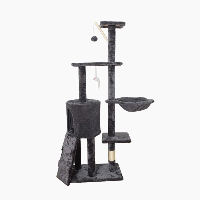 - Stâlpii de zgâriat din sisal integrați direcționează instinctul de zgâriat al pisicii către zonele desemnate și protejează mobilierul și covoarele.