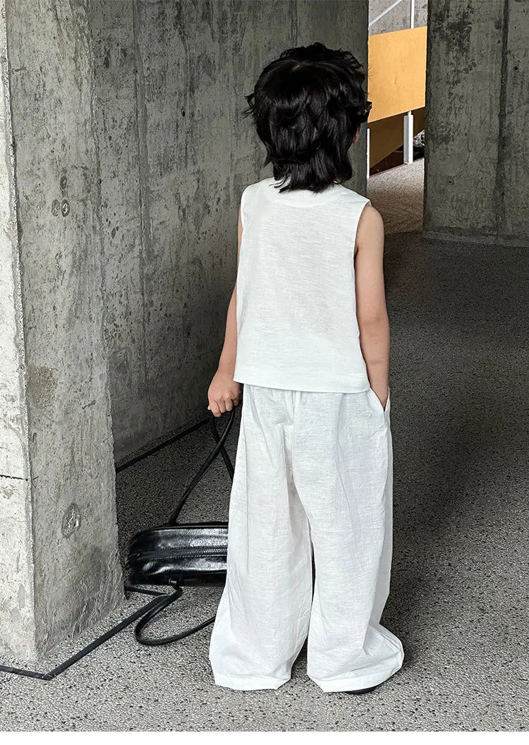 - 1 x pantaloni (cu talie elastică, versiune albă)