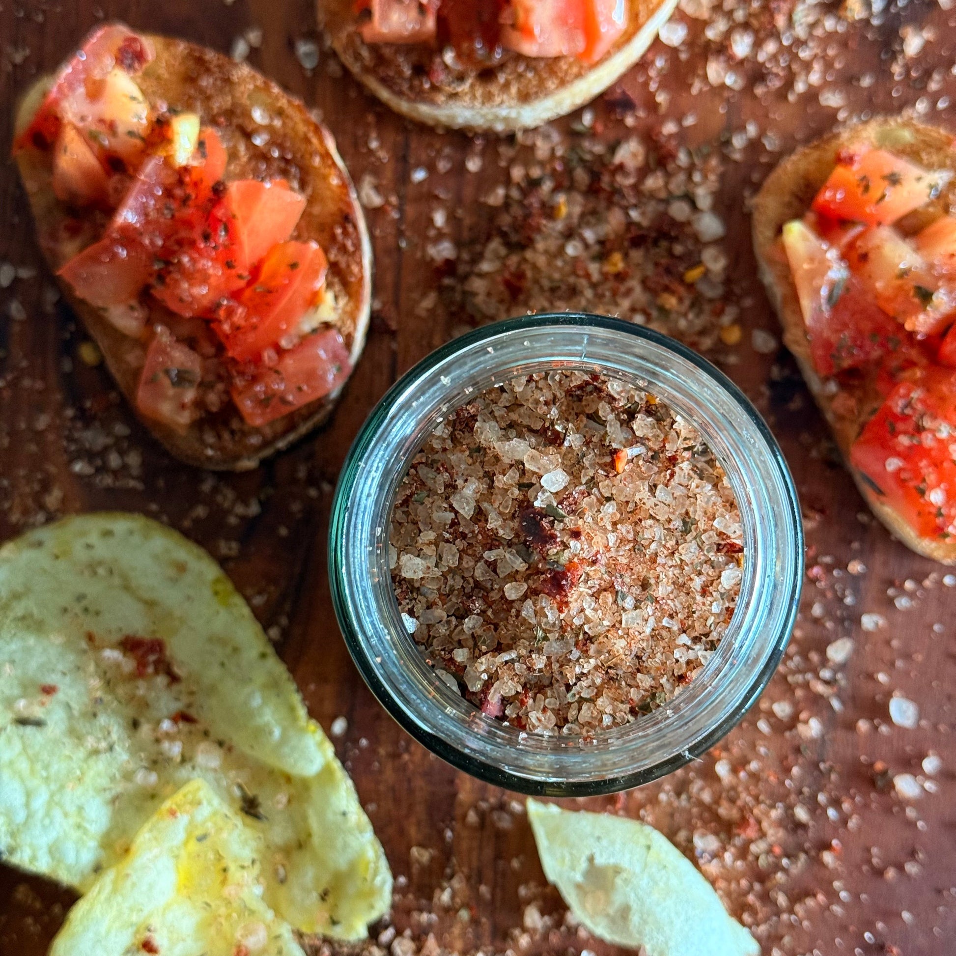 - Ingrediente principale: Sare, fulgi de chili, mentă uscată, alte condimente naturale