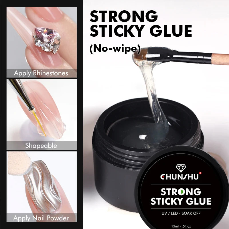 CHUNSHU Gel adeziv super puternic pentru unghii, pentru strasuri, decorațiuni Nail Art, 15G, fără ștergere, adeziv pentru pietre prețioase DIY, gel UV funcțional